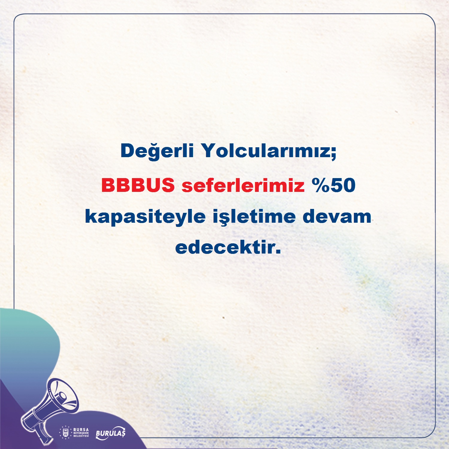 BBBUS seferleri de yüzde 50 kapasiteyle işletime devam edecek…