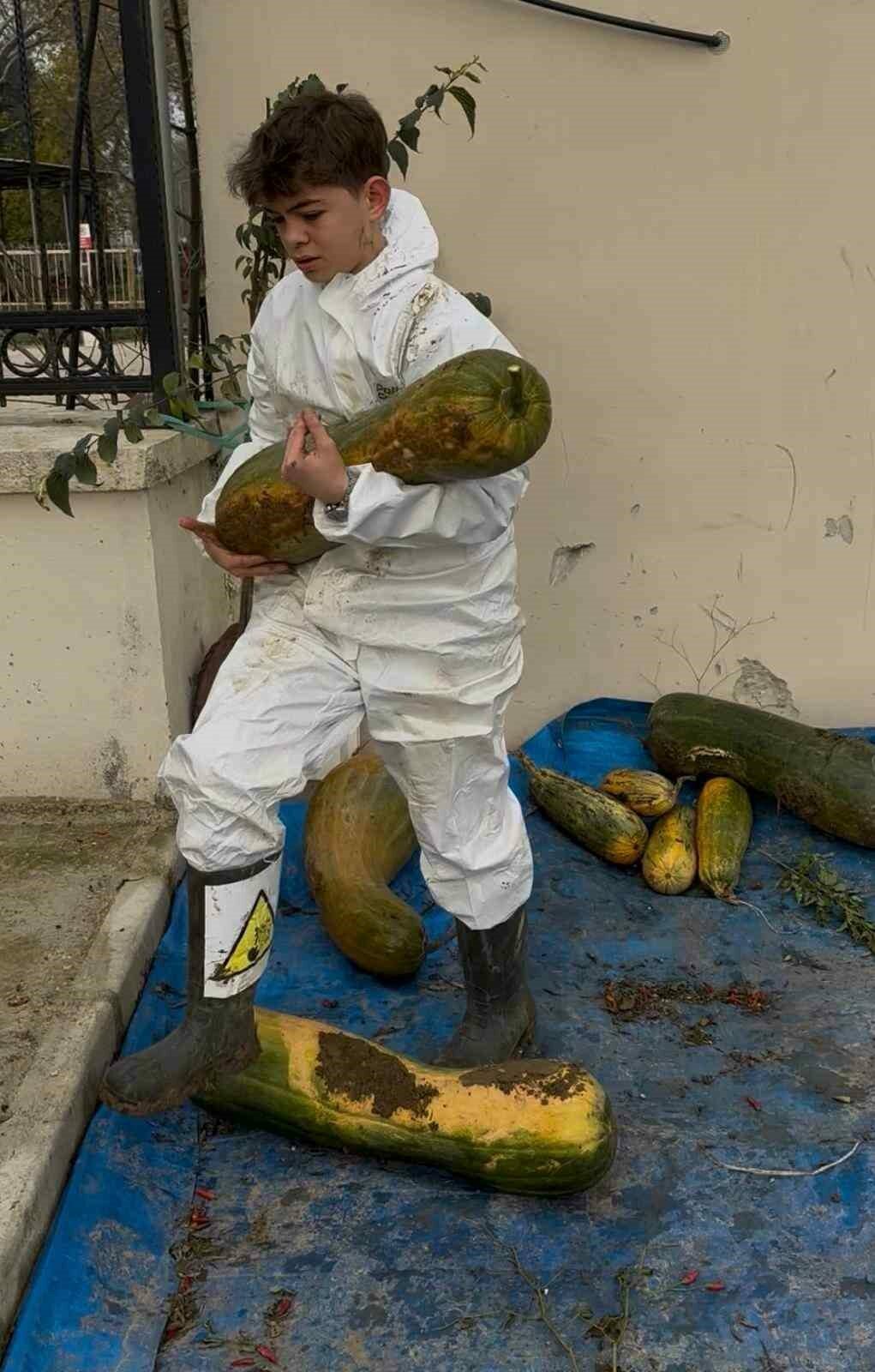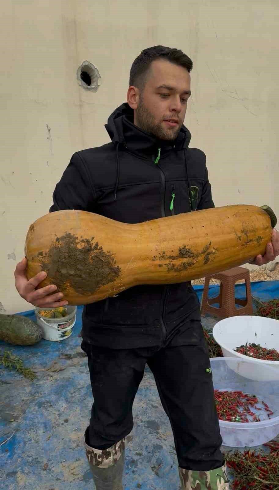 Bunlardan biri olan Kıbrıs bal kabağının tohumunu yurt dışı gezisinde bulup getirdiğini aktaran Atay, “Alanımızda ektik ve iyi verim aldık. Doğal yöntemlerle 30 kilograma ulaşan farklı ağırlıklarda Kıbrıs kabağı ürettik.” dedi.