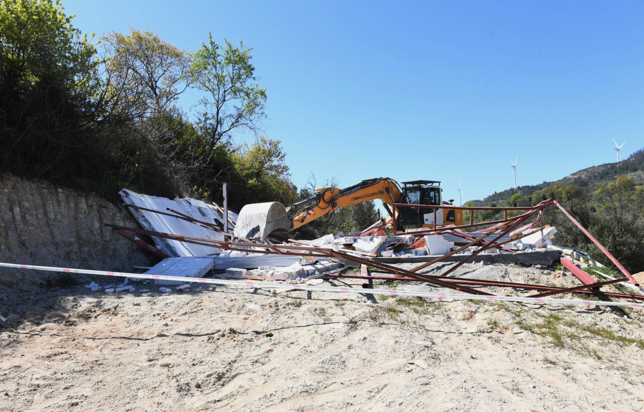 Geniş güvenlik önlemleri altında gerçekleştirilen yıkımda, kaçak yapılar kullanılamaz hale getirildi.