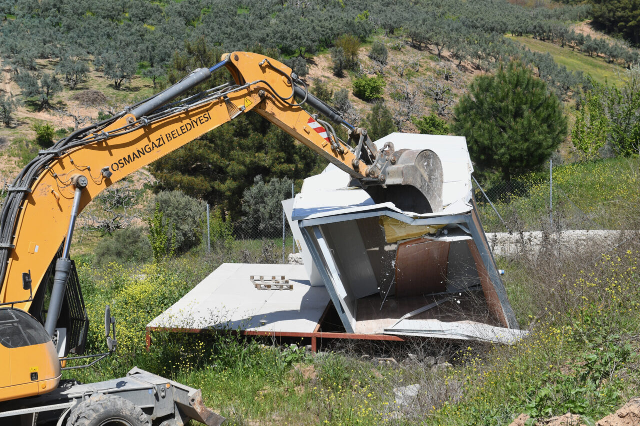 Planlı ve modern bir şehir inşa etmek için çaba harcayan Osmangazi Belediyesi, Gündoğdu Mahallesi’nde imara aykırı şekilde inşa edildiği belirlenen bina, inşaat temeli ve çevre duvarı olmak üzere toplam 25 kaçak yapıyı yıktı.