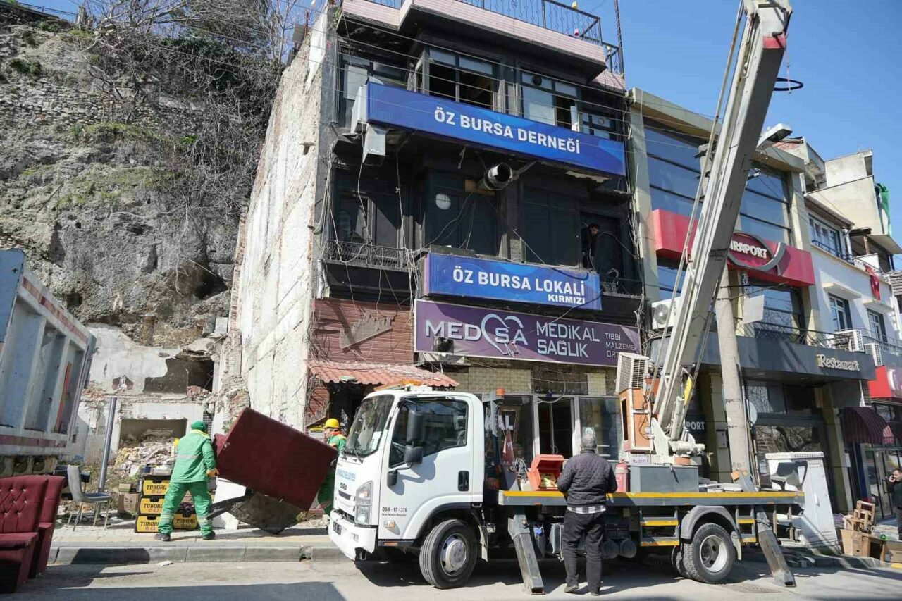 Temiz Cadde üzerinde alkollü ve alkolsüz restoran, otel ve medikal malzemesi satan işyerlerinin bulunduğu 5 bina sabah saatlerinde çevik kuvvet eşliğinde Osmangazi Belediyesi ekipleri tarafından boşaltıldı.