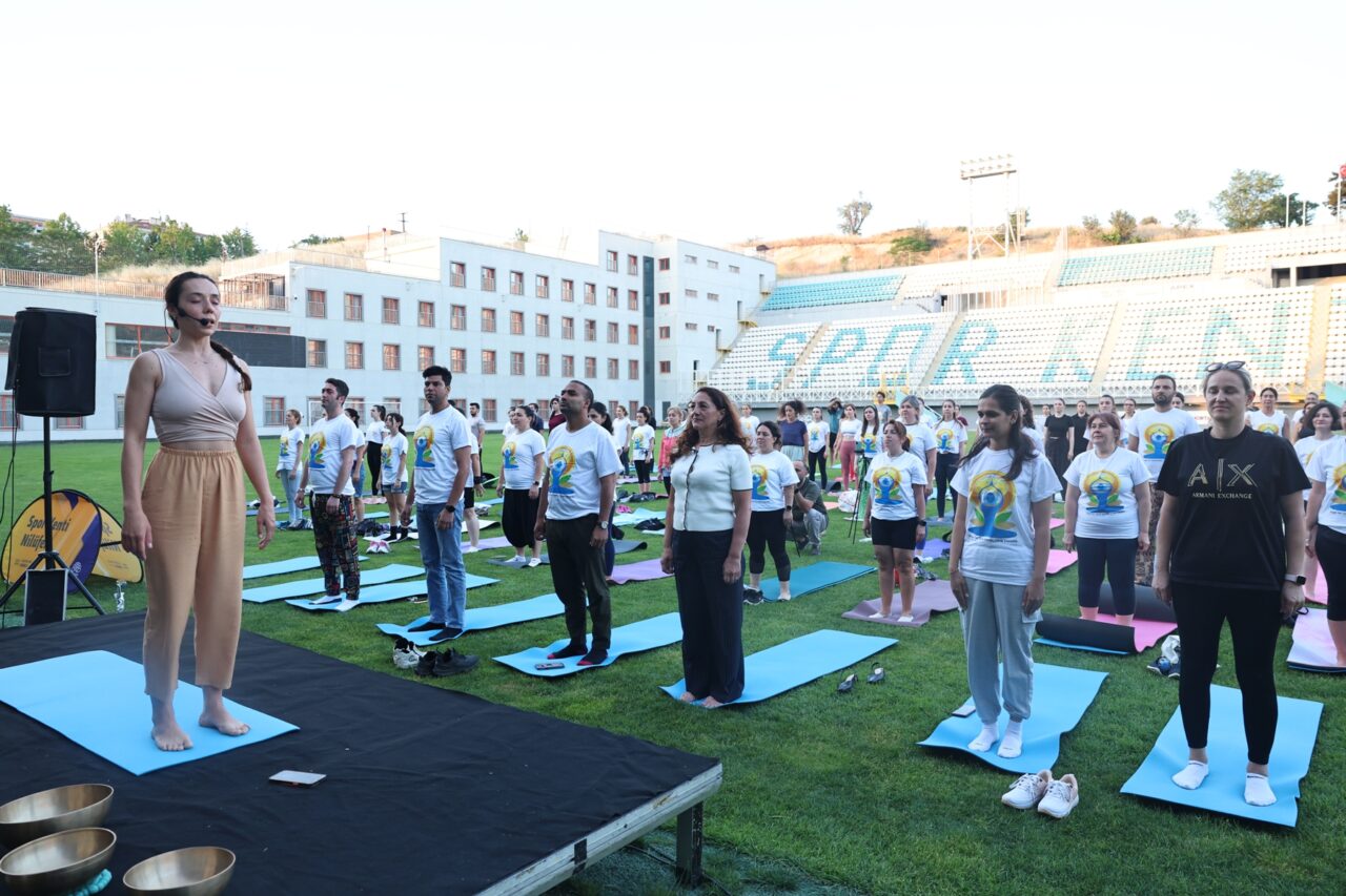 Nilüfer Belediyesi ve Hindistan Başkonsolosluğu iş birliğiyle düzenlenen etkinlik bu yıl “Tek Dünya, Tek Sağlık için Yoga” temasıyla İbrahim Yazıcı Stadyumu’nda gerçekleşti. Ücretsiz etkinliğe yoga severlerin yanı sıra Nilüfer Belediye Başkan Vekili Berna Hacer Bilici ve Hindistan İstanbul Başkonsolos temsilcileri de katıldı.