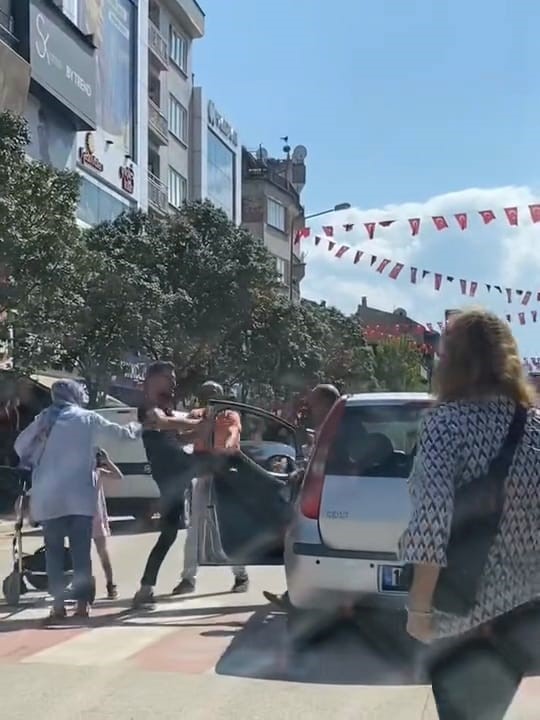 Öfkelenen genç ile sürücü arasında bir anda kavga başladı.
