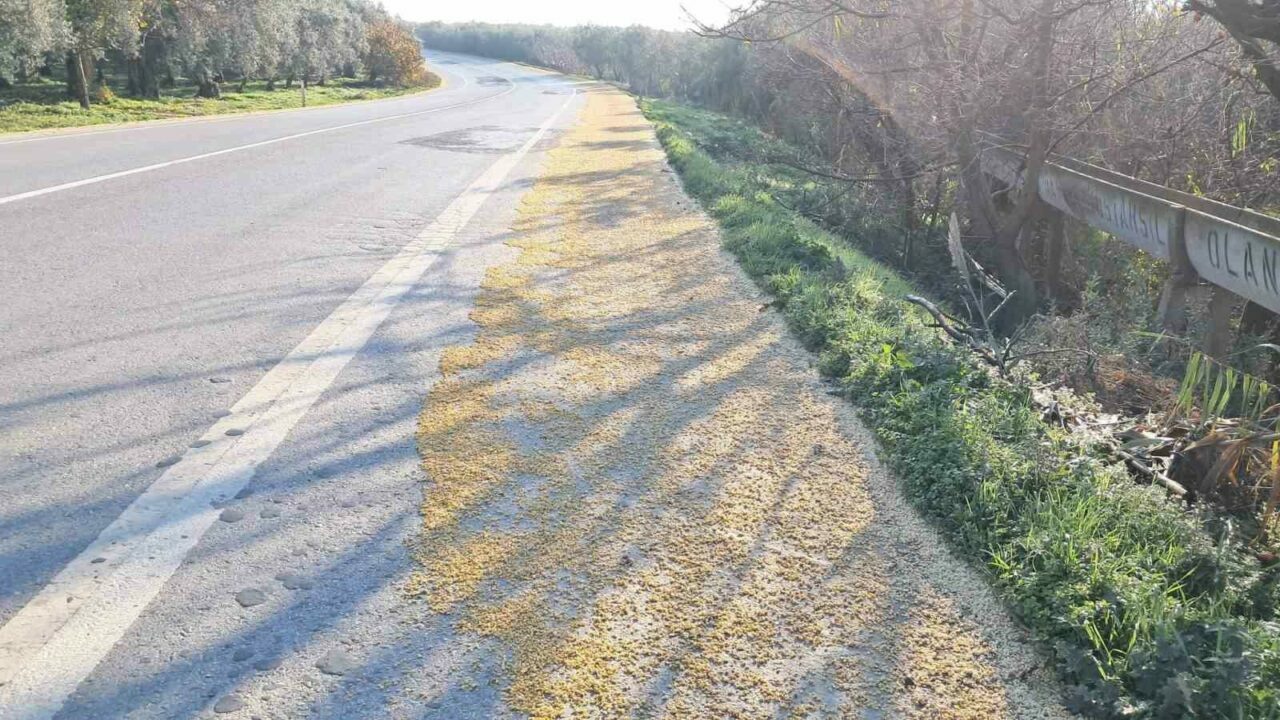 Görenleri hayrete düşüren olay, İznik ilçesinin Boyalıca Mahallesi yakınlarında meydana geldi. Edinilen bilgiye göre, soya fasulyesi yüklü kamyon, ilerlediği esnada yırtılan çuvallardan tonlarca fasulye yola saçıldı. Vatandaşları hayrete düşüren olay, kilometrelerce sürmesi, şoföründe farkın varmadığını ortaya çıkardı.