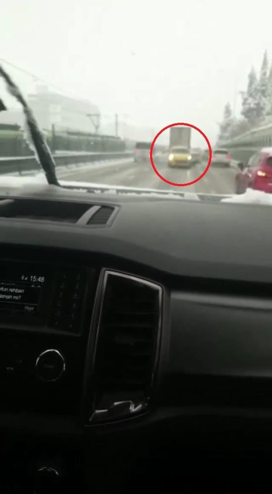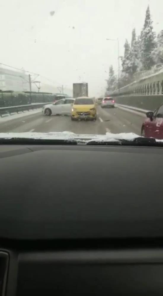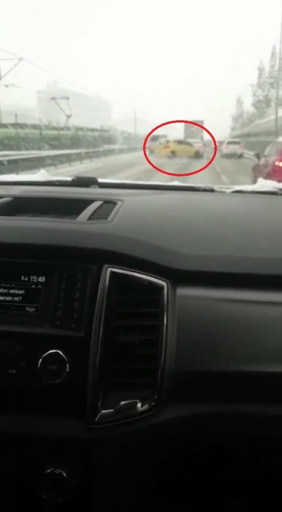 Öte yandan bir otomobil aşırı hız nedeniyle buzlanan yolda duramayarak başka bir otomobile arkadan çarptı, bu anlar ise bir cep telefon kamerası tarafından saniye saniye kaydedildi.