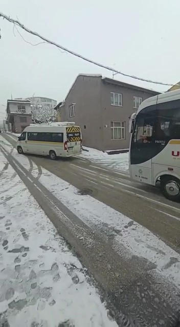 Bursa’da yoğun kar yağışı ve etkili olan soğuk hava nedeniyle yollar buz tuttu. Rampadan aşağıya inen araçlar durmakta zorluk çekti. Bazı araçlar da buzlanan yolda kayarken, bazıları da kaza yaparak zor durabildi. Yokuş yukarı gitmekte olan araçlar ise yolun yarısında kar ve buzlanma nedeniyle yolda kalarak kayarak geri indiler. Mahalle sakinlerinden bir vatandaş ise kamyonetinin arkasına iple bağladığı kızakla çocukları karın üzerinde gezdirdi.