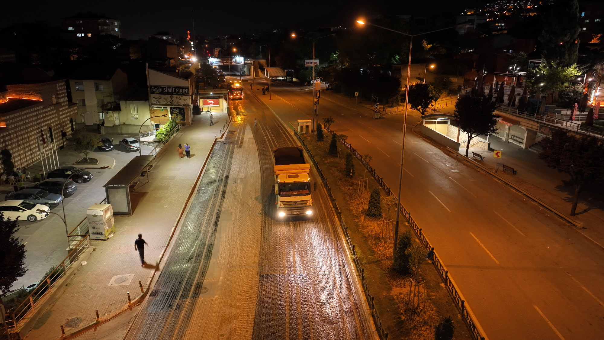 Bursa’da ulaşım sorununa köklü çözümler üretmek amacıyla raylı sistemler, yeni yollar, akıllı kavşaklar ve toplu ulaşım gibi pek çok yatırımı hayata geçiren Büyükşehir Belediyesi, 17 ilçede de mevcut yolları daha sağlıklı hale getirmek için asfalt yenileme çalışmalarına hız verdi. İlçe ve kent merkezlerindeki ana arterlerde trafiğin kesintiye uğramaması için çalışmalar gece boyu sürdürülüyor. Bu kapsamda hafta sonu Bursa-Ankara karayolunun Ankara gidiş istikametinde Yüksek İhtisas Kavşağı ile Mimar Sinan Kavşağı arasını yenileyen ekipler, çalışmalara kent merkezinde de devam ediyor.