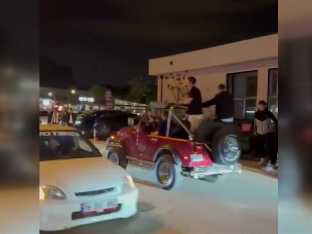 O anlar, çevredekiler tarafından cep telefonu kamerasıyla görüntülendi. Sürücüler tepkiye rağmen araçlarıyla sokakta gezmeye devam etti.