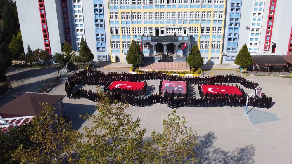 Okulda eğitim gören yaklaşık 500 öğrenci, okul bahçesinde sıralanarak Türkiye haritasını oluşturdu.