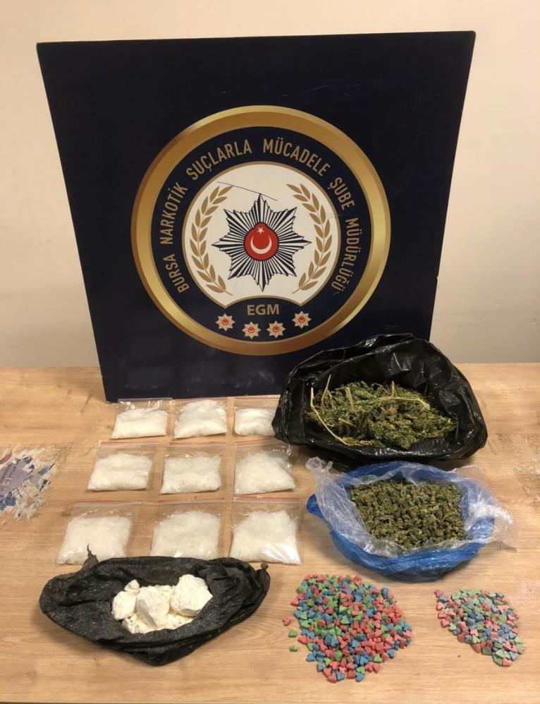 Havadan drone destekli yürütülen operasyonda şahısların evlerinde ve araçlarında yapılan aramalarda, 10 kilo metamfetamin, 2 kilo 600 gram esrar, 1 kilo 100 gram bonzai, 56 bin adet ekstasy tablet, 56 bin adet yeşil reçeteyle temin edilen hap, 6807 adet captagon, 100 gram kokain, 1 gram eroin, 4 adet hassas terazi, 2 ruhsatsız tabanca, 1 ruhsatsız tüfek ve 11 fişek ile beraber uyuşturucu ve uyarıcı madde ticaretinden elde edildiği tespit edilen 65 bin 335 lira ve bir miktar döviz ele geçirildi.