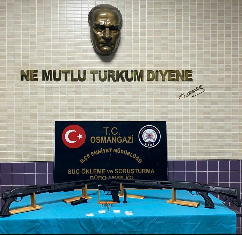 Zanlıların üzerlerinde ve evde yapılan aramalarda 1 tabanca, 2 pompalı tüfek, suç geliri olduğu değerlendirilen 1895 lira ve 10 avro ile bir miktar uyuşturucu ele geçirildi.