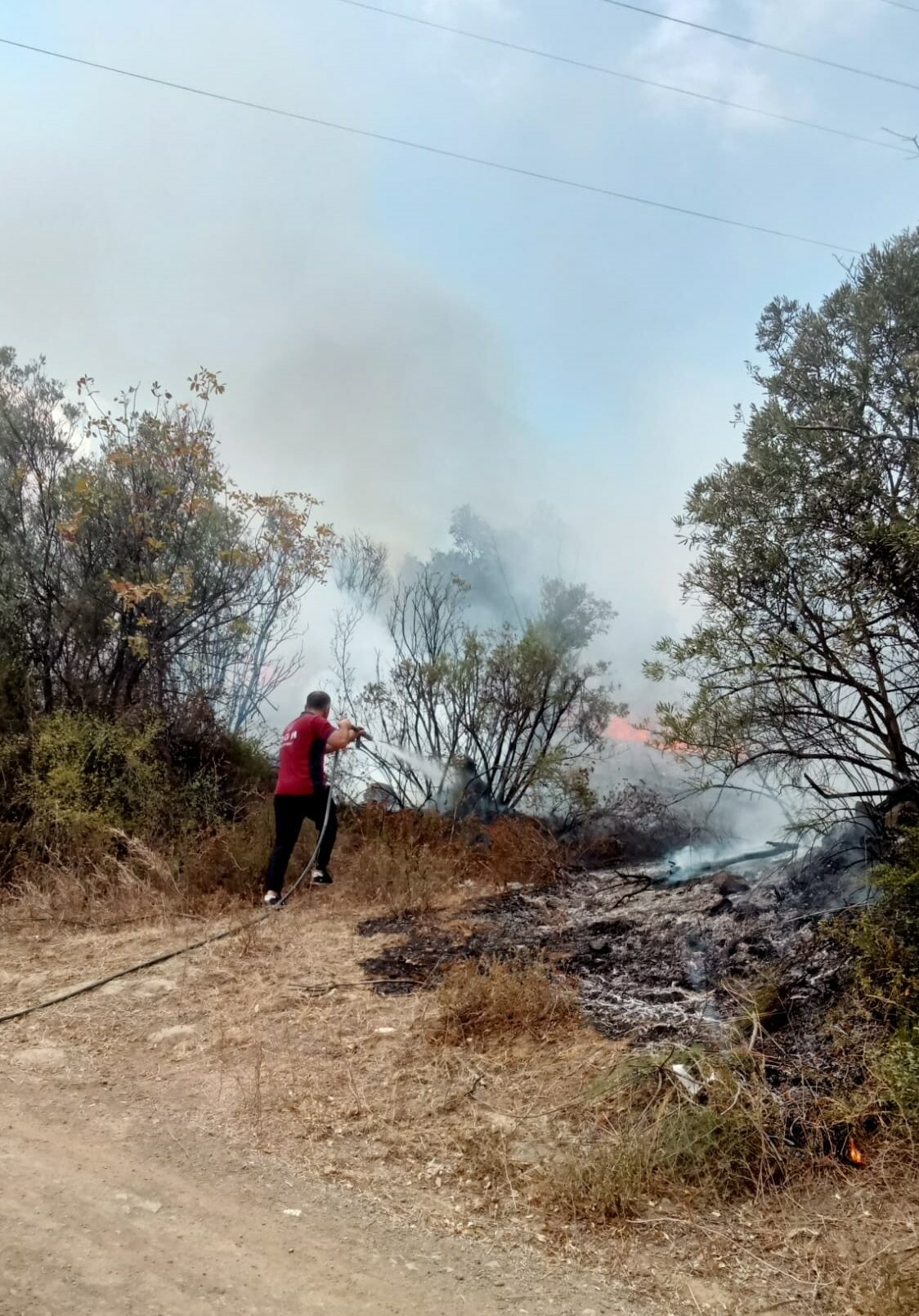 Halitpaşa Mahallesi’nde zeytin ağaçlarının bulunduğu alanda henüz belirlenemeyen nedenle yangın çıktı.