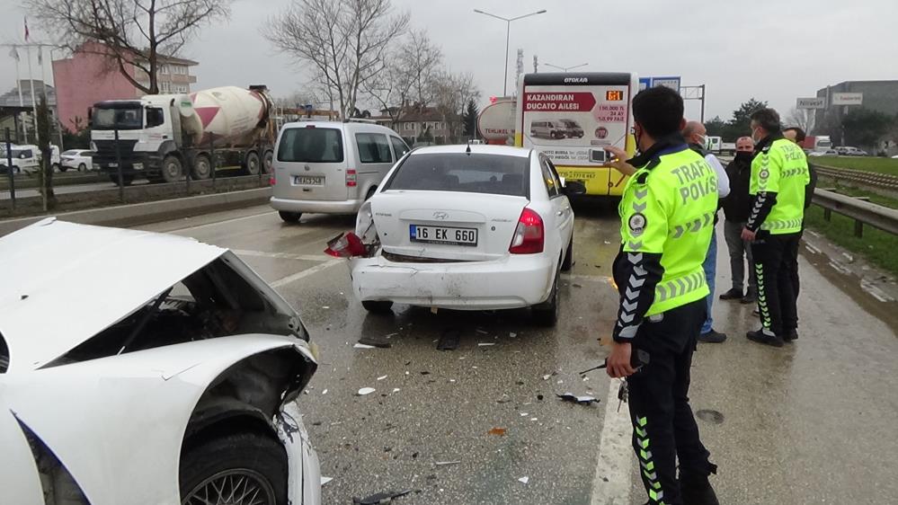 Önündeki araca arkadan çarptı. Duran otomobil de önündeki halk otobüsüne çarptı.