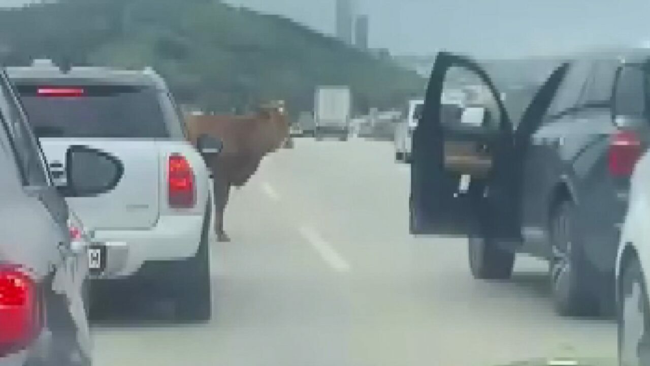 Bir süre duran trafik, bazı sürücülerin araçlarından inip boğayı yol kenarına yönlendirmesiyle açıldı.