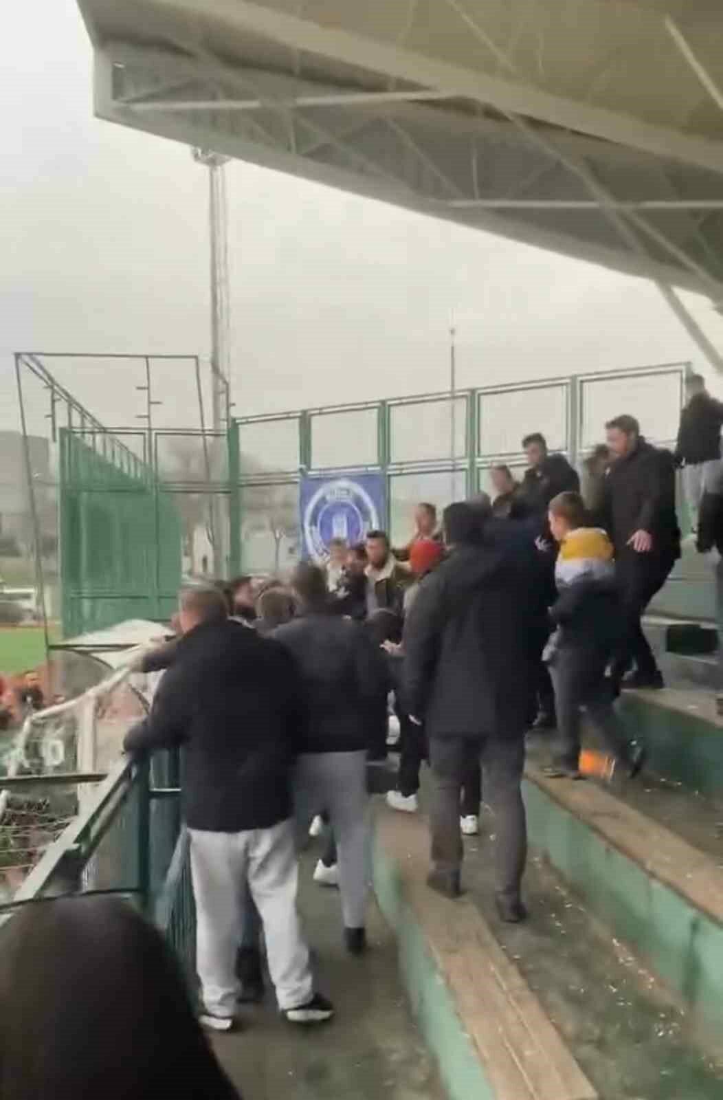 Taraftarın da kavgaya dahil olmasıyla görevliler zor anlar yaşarken, olay yerine polis sevk edildi.