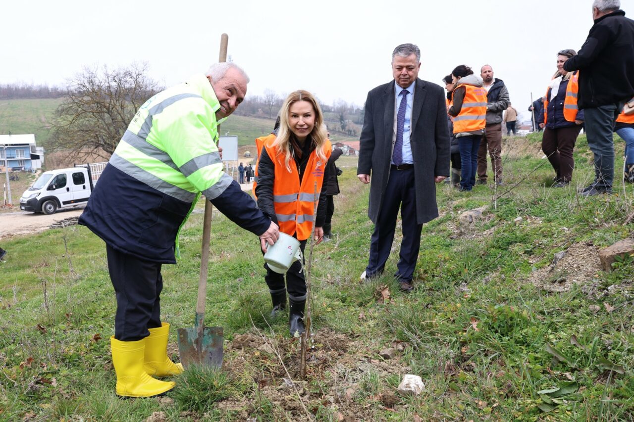 Konuşmaların ardından protokol üyeleri ve katılımcılar, fidanları dikerek ilk can sularını verdiler.