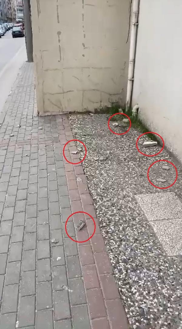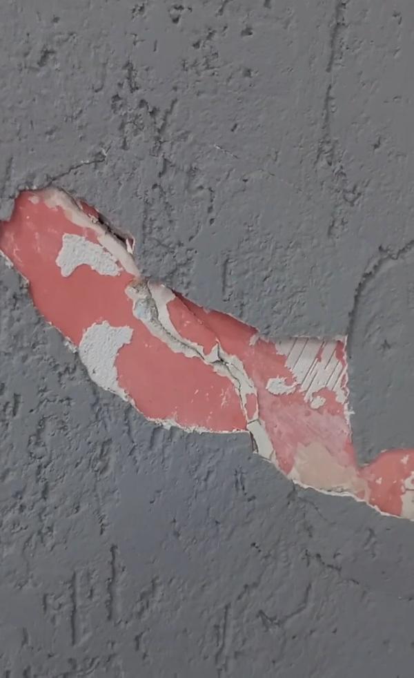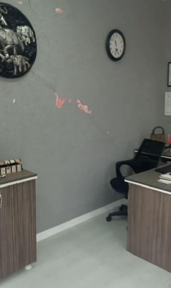 Bir binada oluşan çatlak sonrası, beton parçalarının yere düştüğü görüldü.