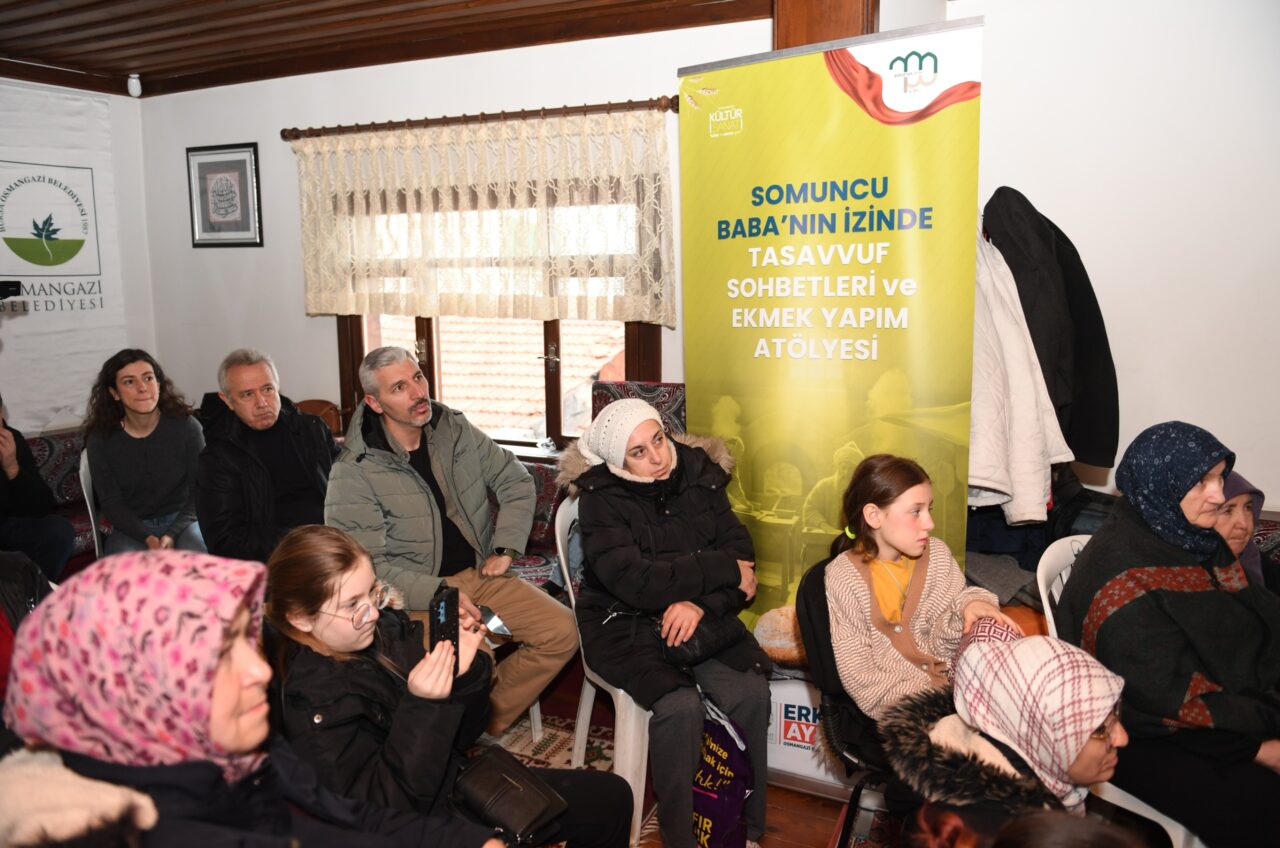 Osmangazi Belediyesi tarafından gerçekleştirilen “Somuncu Baba’nın İzinde Tasavvuf Sohbetleri ve Ekmek Yapım Atölyesi” kapsamında katılımcılara ekşi mayanın yapım süreci uygulamalı olarak anlatıldı.