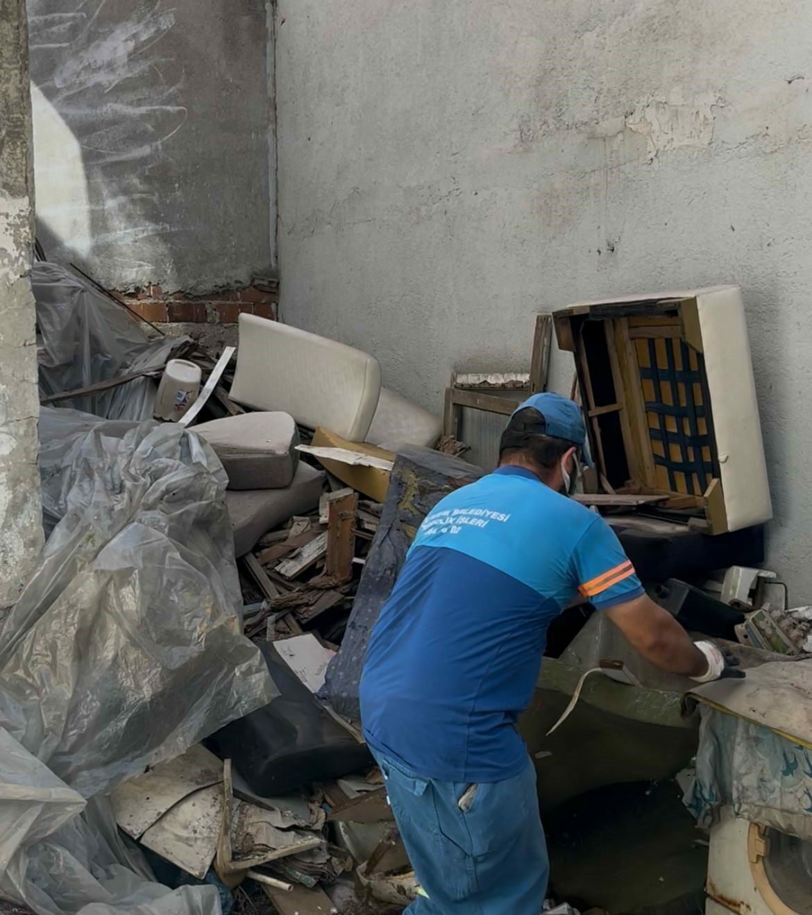 Ekipler gün boyu süren çalışmada tonlarca çöpü 3 kamyona yükleyip tahliye etti.