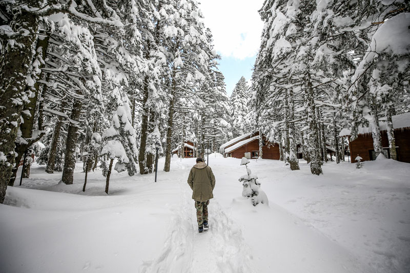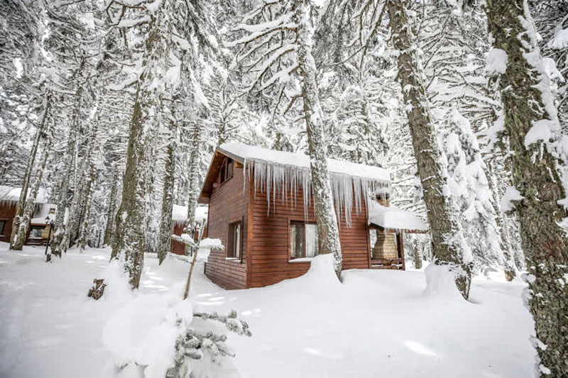 Bungalov tarzı evlerde kalan tatilciler, karla kaplanmış orman içinde kuş cıvıltılarıyla kalkarak, “eşsiz” vakit geçirmenin de keyfini yaşıyor.