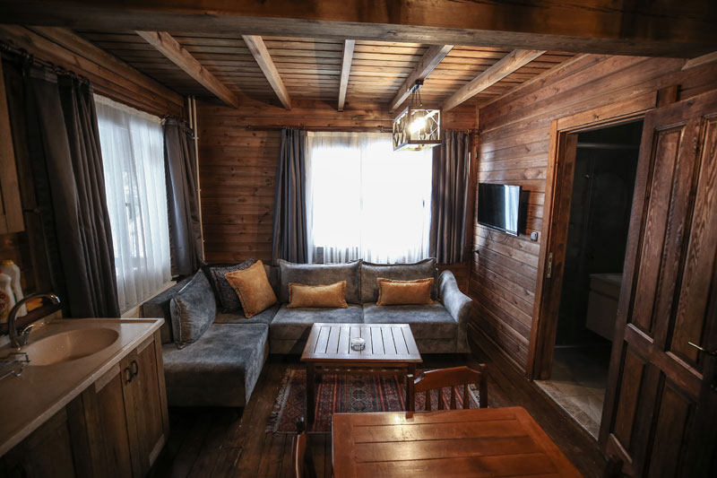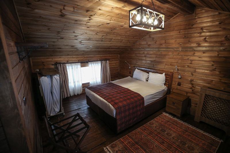 Bu dönemde kar olmasının etrafını güzelleştirdiğini vurgulayan Başaran, “Gündüz kuş sesleri huzur veriyor. Bir otel ortamı gibi değil. Gerçekten farklı ve güzel. Biz de bu yüzden burayı tercih ettik.” dedi.