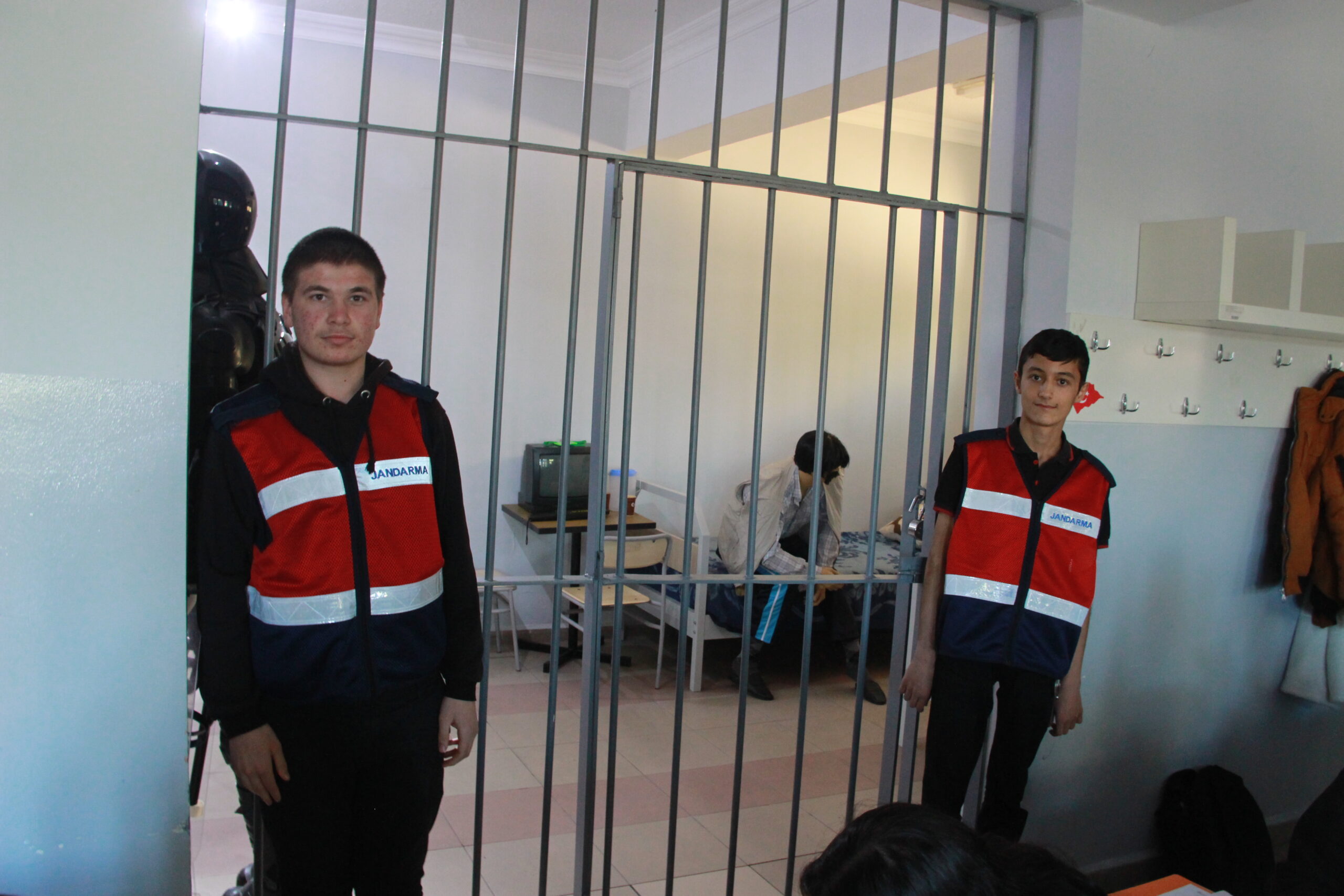 Gerçeğini aratmayacak türden bir eğitim… Temsili cezaevi koğuşu bile var. Öğrencilerin bir tiyatrocu özgüveninde mesleklerini uygulamalı şekilde sergilemeleri etkileyiciydi… Adalet Öğretmeni Ebru Kıran, ‘Öğrencilere, yaparak, yaşatarak öğretmek amacıyla bu şekilde etkinlikler düzenleyip derslerimizi işliyoruz’ diyor.