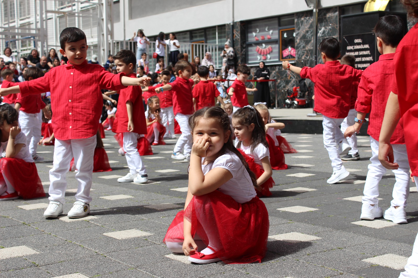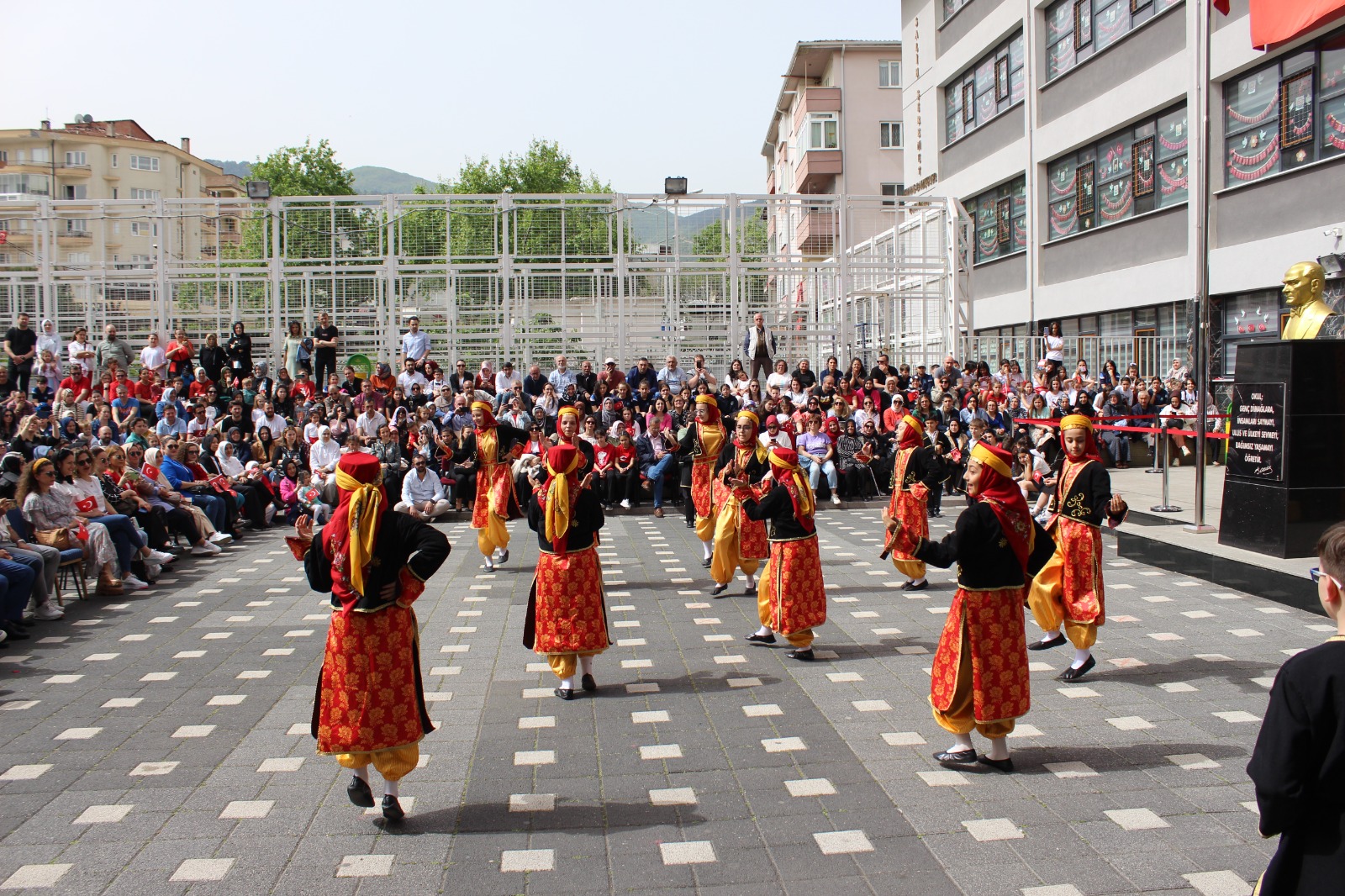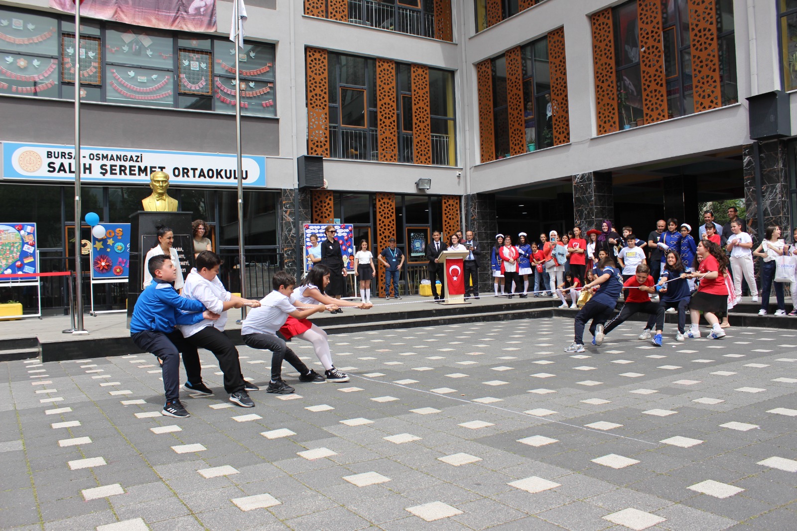 Mahalle sakinlerinin de bayraklar ile katıldığı yürüyüşün ardından, okul bahçesinde geleneksel oyunlarında yer aldığı törende bu anlamlı gün coşkuyla kutlandı.