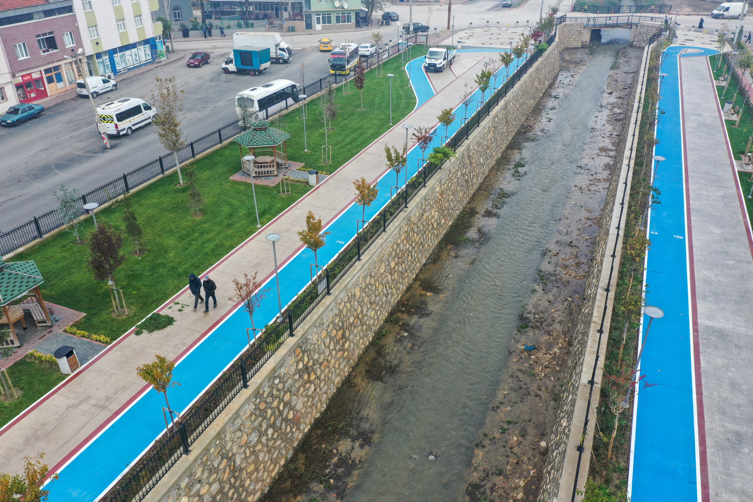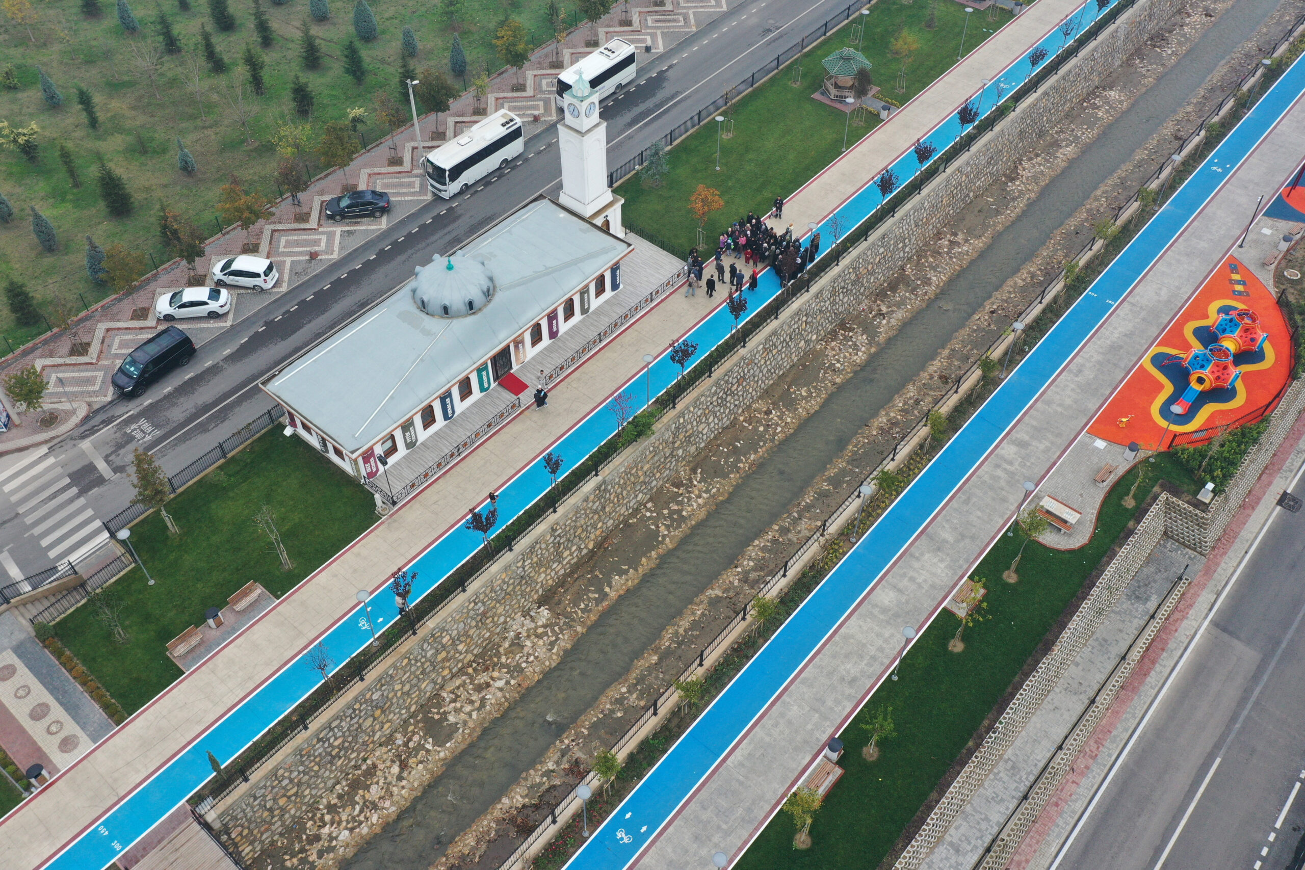 İlçeye kazandırılan yaklaşık 37 bin metrekarelik alanda bisiklet ve yaya yolları, 7 gün 24 saat açık “kitaphane”, spor alanları, otopark gibi bölümler yapılarak hizmete açıldı.