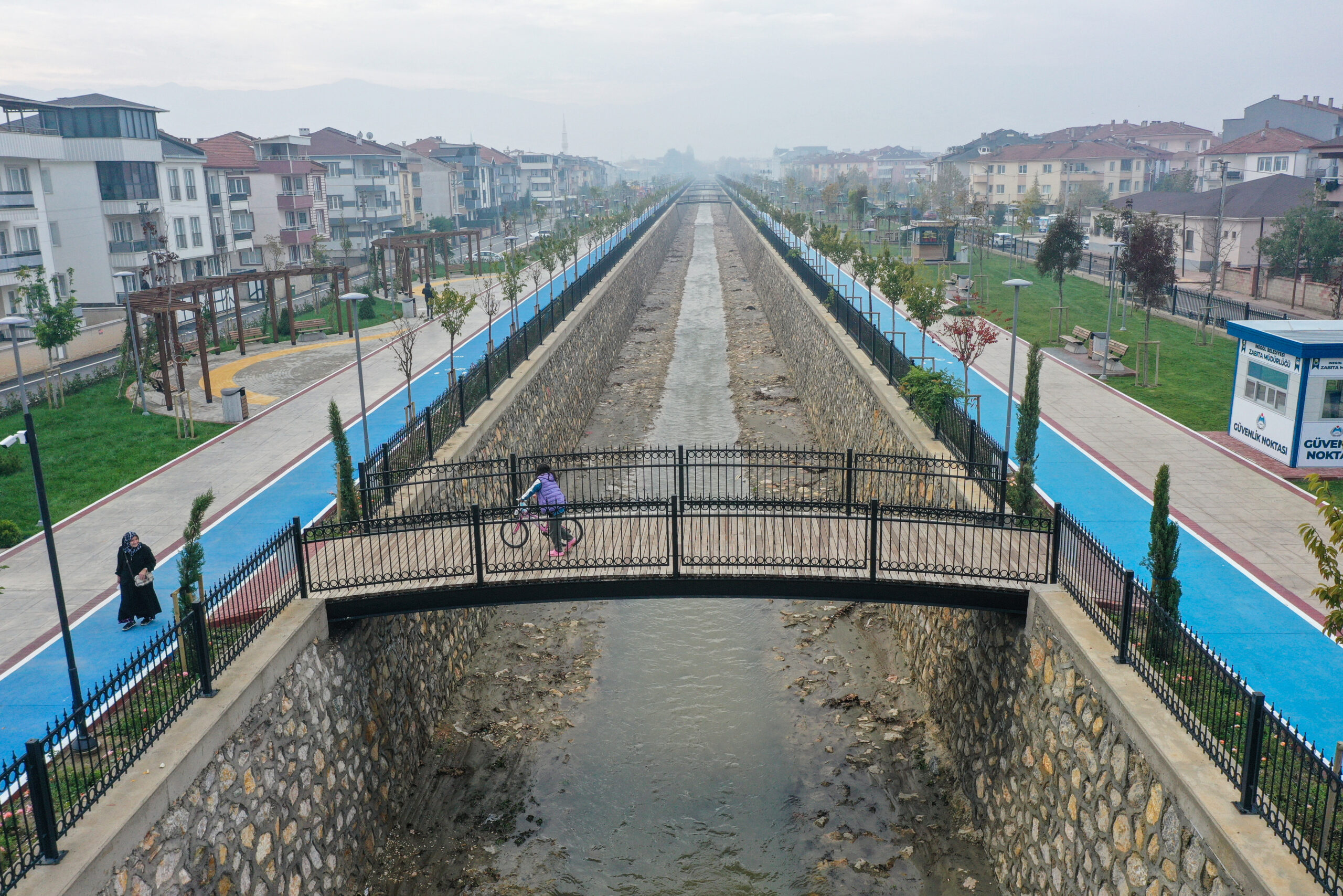 “Kanal İnegöl Projesi”yle, Mesudiye Mahallesi’nden geçen ve eskiden çevresine kötü kokular yayan Bedre Deresi üzerinde yaklaşık 850 metre uzunluğundaki alan ıslah edildi.