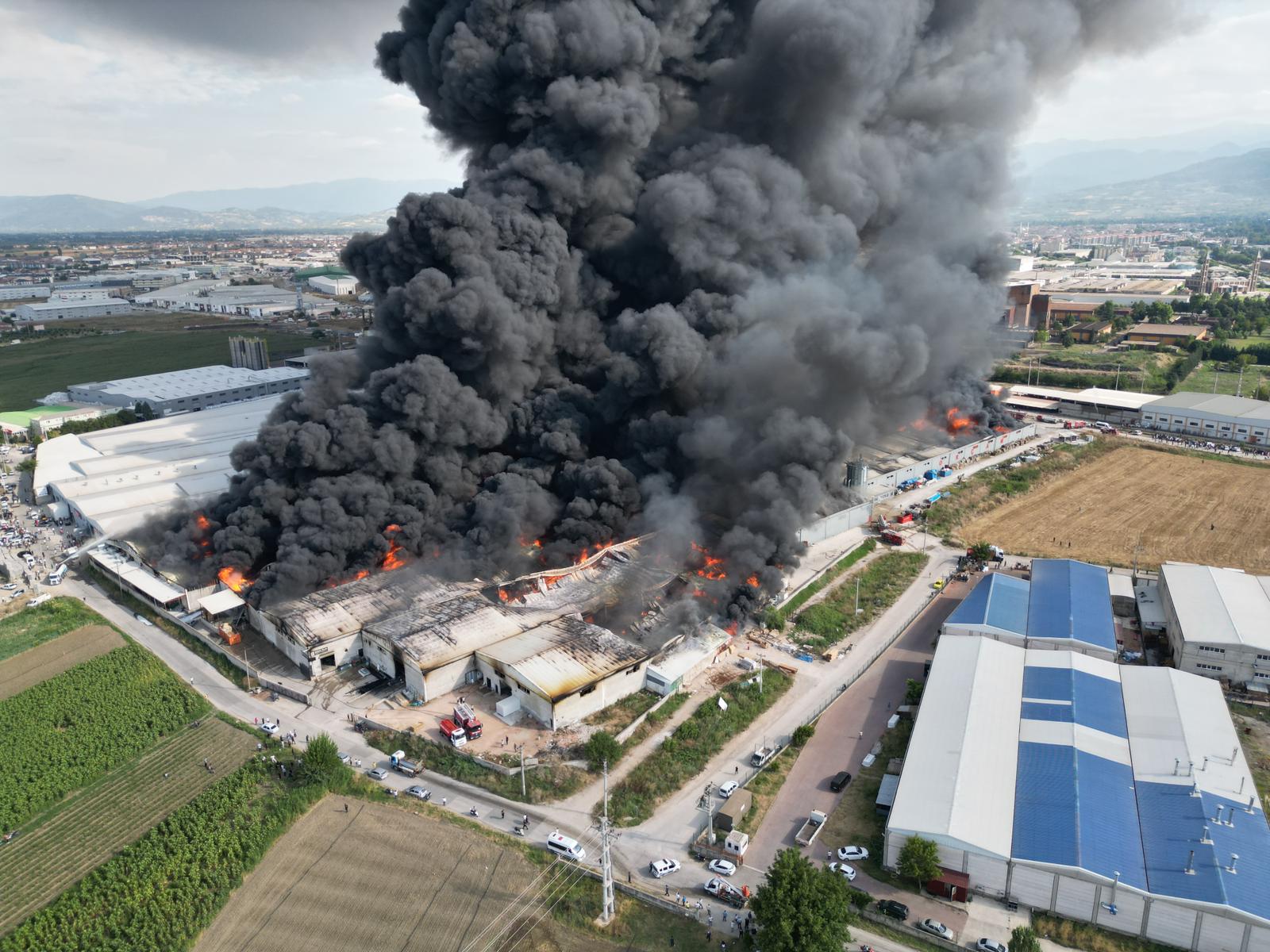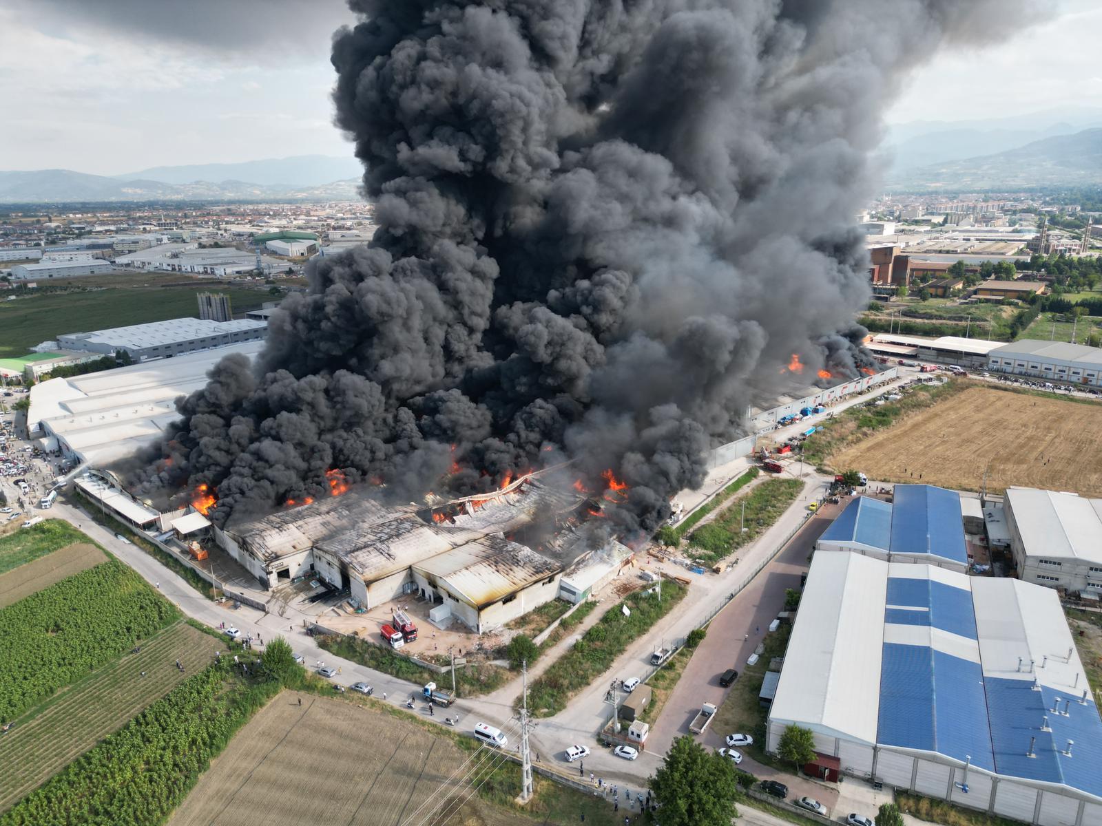 Yangın cam, mobilya ve metal fabrikalarına da sıçradı, alevler kısa sürede büyüdü.