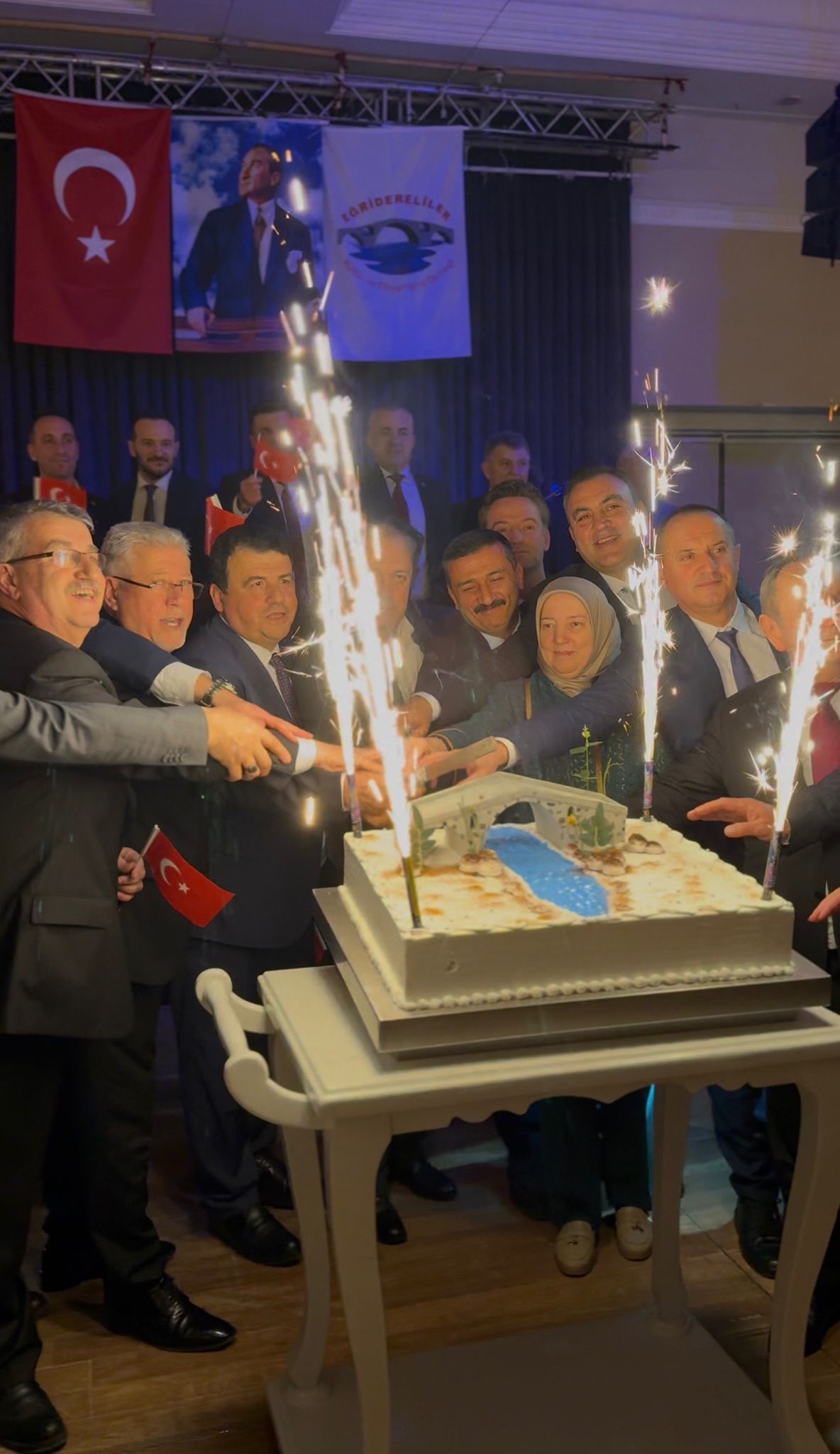 Gecede yeni üyeler Yelda Coşkun Özkan, Betül Koç, Adnan Hatipoğlu, Suat Mutlu ve Kırcaalisiad Başkanı Osman Güler’e birer anı plaketi takdim edildi. 10. Yıl Marşı ve 100. Yıl Marşı eşliğinde pasta kesilirken, soydaşlar Türk Bayraklarını büyük bir coşku ve gururla salladı. Gecenin sonunda sahne alan Grup Dijital, katılımcılara keyifli onlar yaşattı.