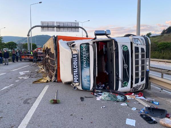 Afyon’dan Bursa’ya kurbanlık götüren Hakan Gönül yönetimindeki 03 RF 338 plakalı TIR, Turanköy Mahallesi girişinde, kontrolden çıkıp devrildi. Arkadan gelen Yusuf Şal yönetimindeki 34 BRA 014 plakalı otomobil, devrilen TIR’a çarptı.