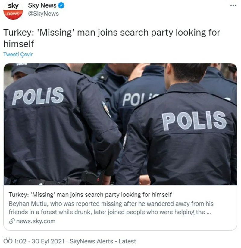 İngiliz basınında SkyNews, “’Kayıp’ adam kendini arayan arama ekibine katıldı” başlığıyla paylaştığı haberde, “Bir ormanda sarhoşken arkadaşlarının yanından ayrılıp kaybolduğu bildirilen Beyhan Mutlu, daha sonra kendisini araması için yetkililere yardım edenlere katıldı” ifadelerine yer verdi.