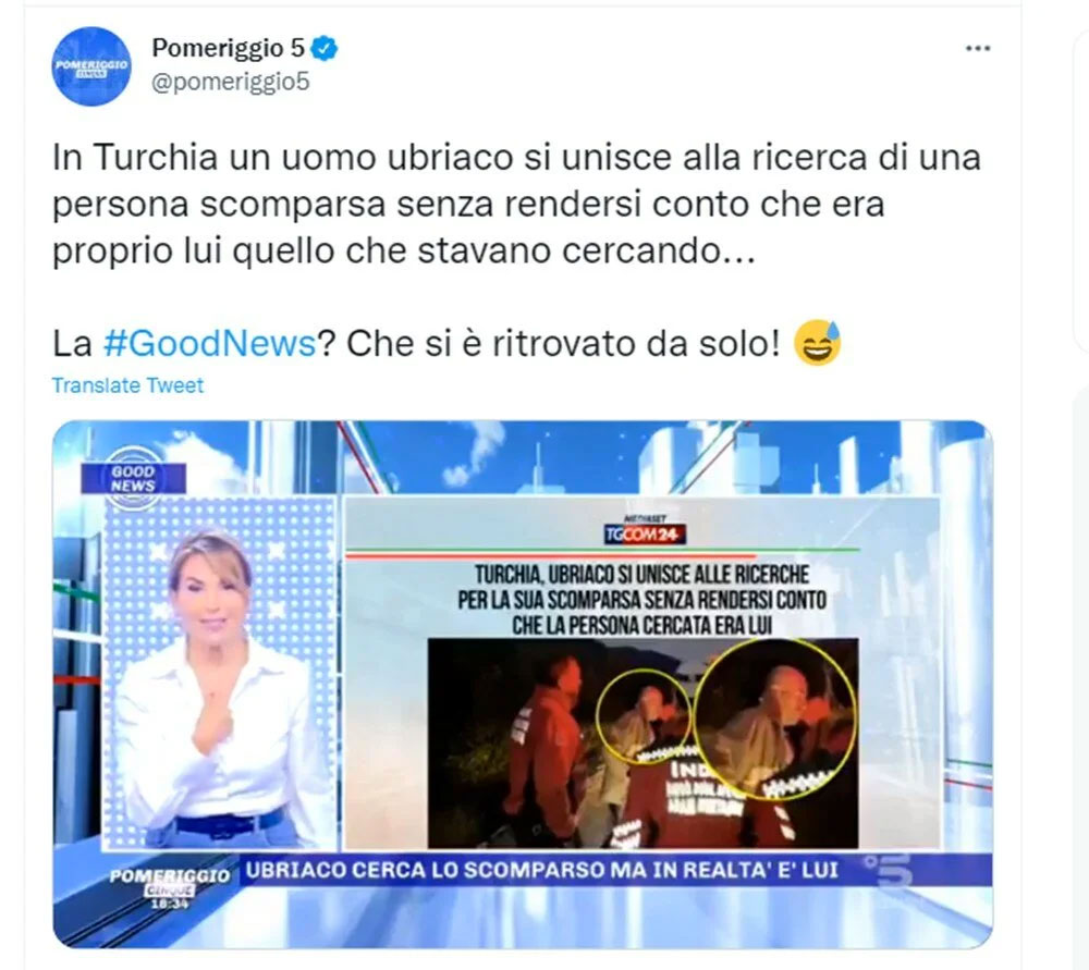 Programda konuşulan Mutlu’nun görüntüleri, “Türkiye’de alkollü bir adam, aradıkları kişinin kendisi olduğunu anlamadan kayıp bir kişiyi aramaya katılıyor… Kim kendini tek başına buldu ki!” ifadeleriyle twitter hesabından paylaşıldı.