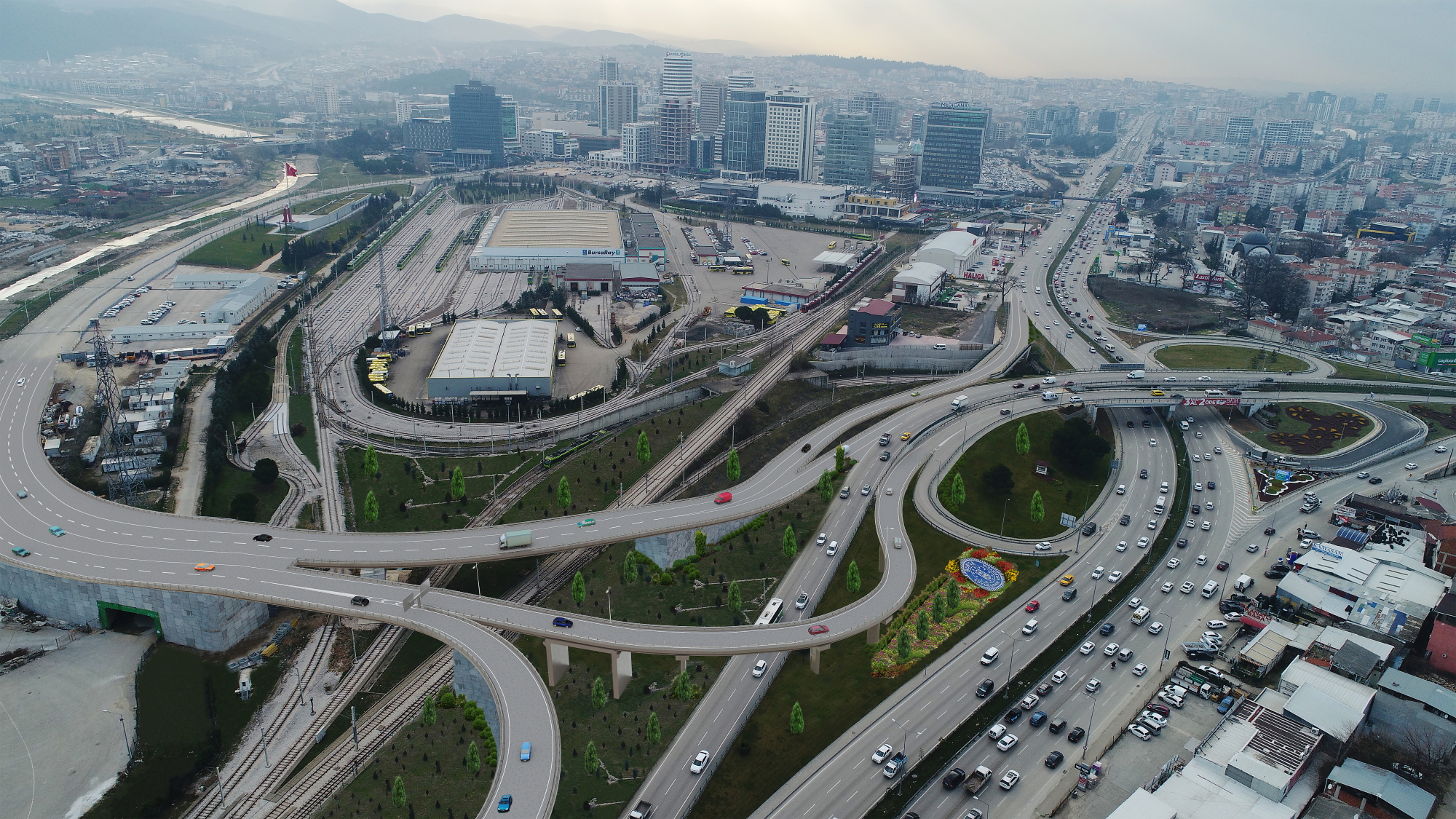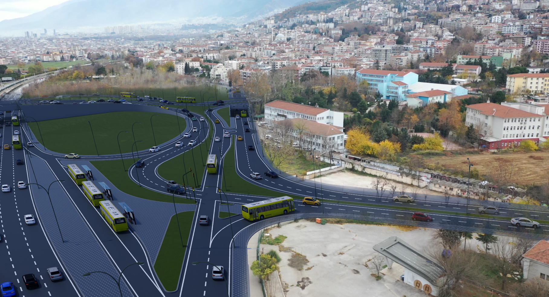 Bursa Büyükşehir Belediyesi’nun Acem Kavşağı’ndaki trafik yükünü azaltmak için farklı kollardan yapacağı yol çalışmalarını bir de böyle görün…