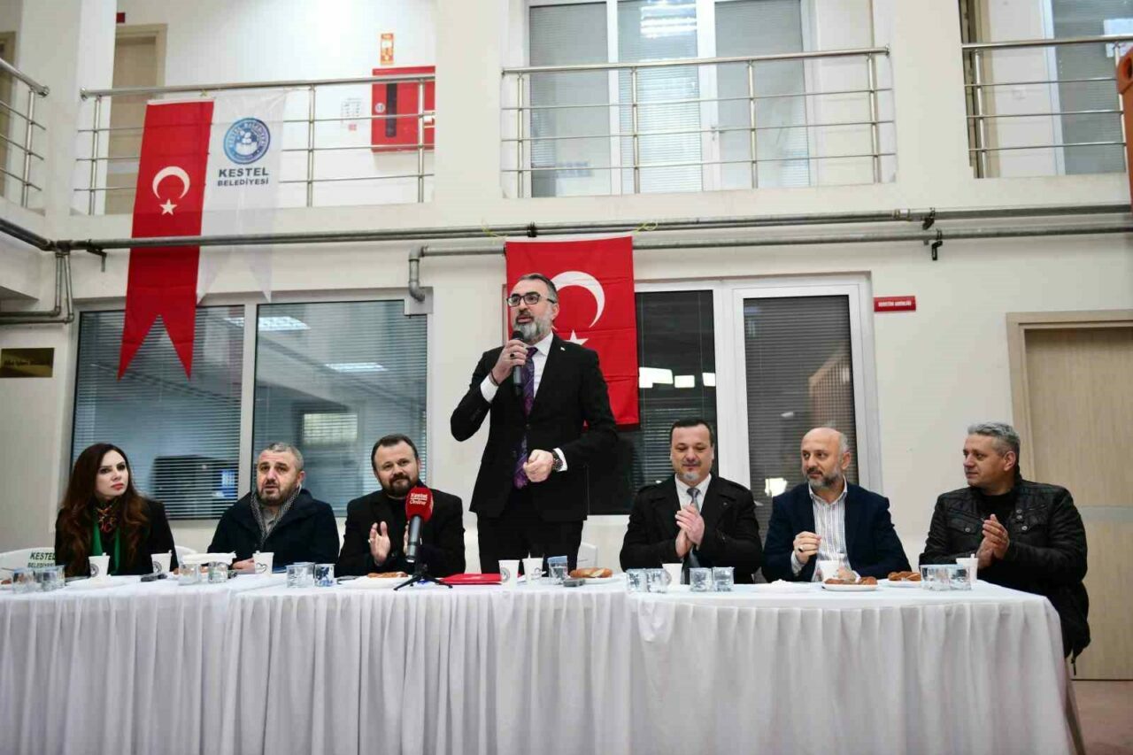 Hizmet-İş Sendikası adına konuşma yapan Bursa Şube Başkanı Mustafa Yavuz, ’’ Belediye Başkanımız Ferhat Erol sayesinde toplu iş sözleşmemiz sağlam temeller üzerine atılmıştır. Kestel’in 7’den 70’e tüm vatandaşlarına en iyi hizmeti sunan, her ihtiyaçlarında yanlarında olan Belediye Başkanımız Sn. Ferhat Erol, biz çalışanlarının da her zaman yanında olmuştur. Bugün burada Başkanımız sayesinde Kestel işçisi hakettiği ücretin karşılığını almanın haklı gururunu yaşamaktadırlar. Ben çalışanlarımı bir aile olarak görüyorum, ben çalışanlarımı hak ettiği değeri ve ücreti veririm, benim işçimin ve ailemin huzursuz olmasına gönlüm razı olmaz diyen ve sizlere müjdeyi veren Başkanımıza şahsım adına ve sendika olarak teşekkür ederiz. Hayırlı ve uğurlu olsun.’’ diye konuştu.