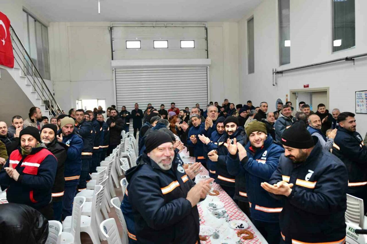 Kestel Belediye Başkanı Ferhat Erol, “Çok değerli çalışma ve yol arkadaşlarım. Ben de bir emekçi kardeşinizim. Biz de bu yollardan geldik. Allah’a hamd olsun bizlere bu makamı emanet etti. Değerli başkanıma dün de belirttim, kendi şirketimde de böyle olmuştur, ‘30 çalışanıma ekmek veriyorum’ değil ‘30 çalışanımla birlikte ekmek yiyorum’ diye bir düsturumuz vardı. Bugün de burada 321 arkadaşımla beraber Kestelimize hizmet etmeye, Kestel halkının yüzünü gülümsetmek için hep beraber çalışıyoruz. Sizler gülerseniz Kestel halkının güleceğini biliyorum.’’ dedi.