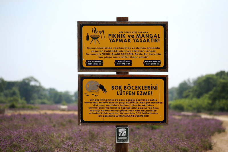 Longoz alanına Karacabey Belediyesince konulan tabelalarda, gübre böceklerine zarar verilmemesi konusunda görsellerle uyarıda bulunuluyor, bölgeye zaman zaman giden belediye görevlileri ziyaretçilere uyarılar yapıyor.