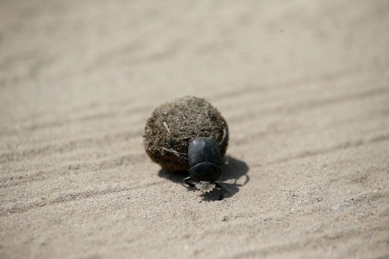 Çıkman, bu böceklerin beslendikleri hayvan dışkısını gübre topları haline getirdiğini ve başları doğuya dönük olacak şekilde arka bacaklarıyla yuvarlayarak yuvalarına götürdüklerini bildirdi.