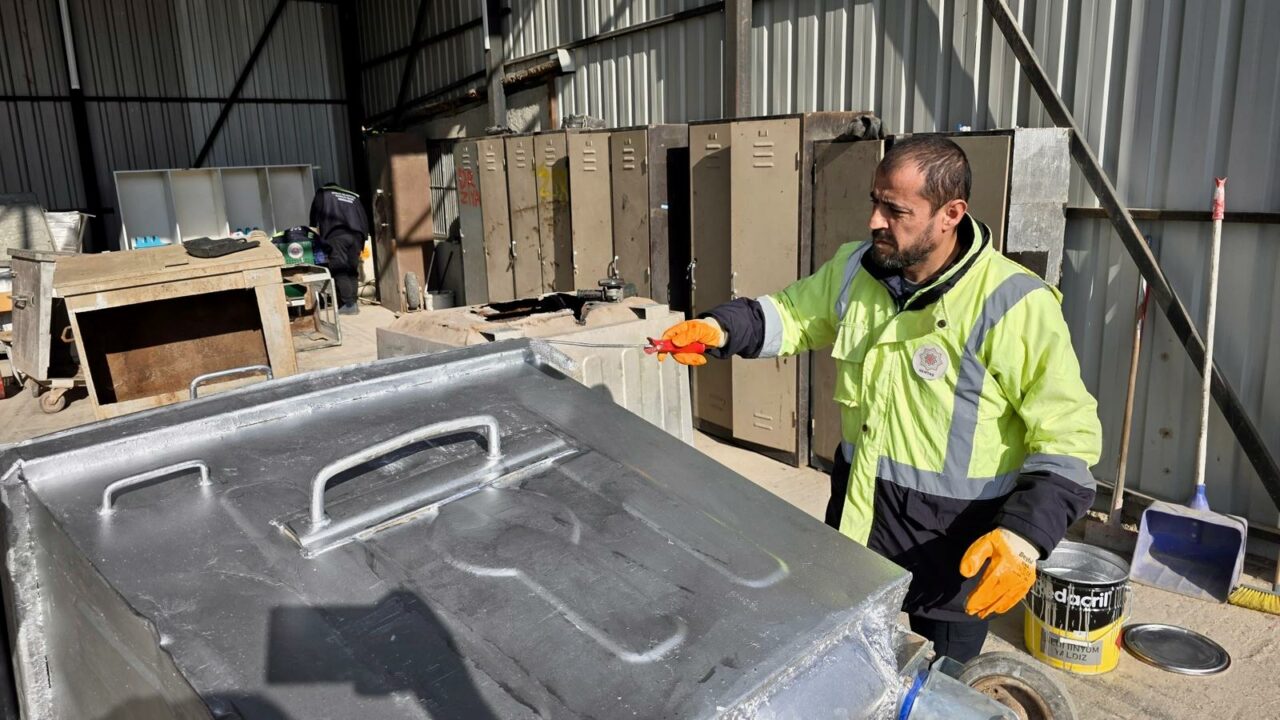 Temizlik İşleri Müdürlüğü ekipleri, yeni konteyner alımı yapmak yerine mevcut olanları bakım ve onarımdan geçirerek hem maliyetleri düşürüyor hem de kaynakların daha verimli kullanılmasını sağlıyor.