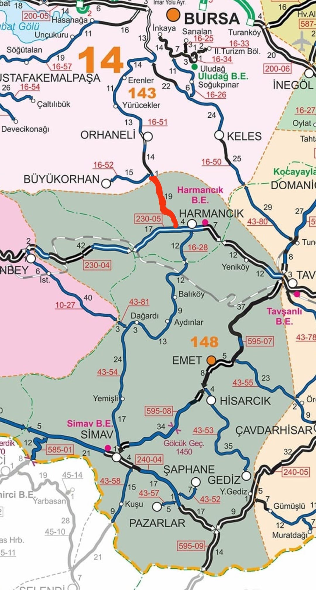 “Orhaneli İl Yolu’nun 65-85. km’leri arası orman yangınının etkisini artırması nedeniyle geçici olarak trafiğe kapatılmıştır”