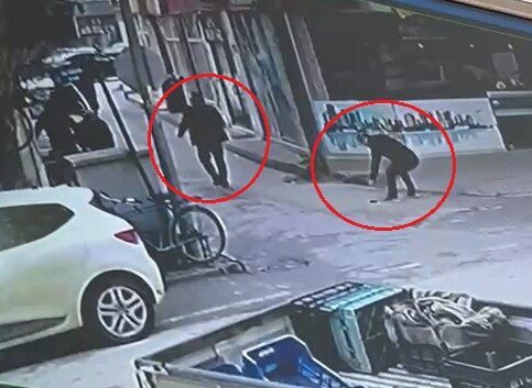 Polis, kaçan şüphelinin yakalanması için çalışma başlatırken, saldırı anına ilişkin yeni görüntüler ortaya çıktı. Çevredeki bir iş yerinin güvenlik kamerasına yansıyan görüntülerde, kıraathanenin kapısının önünde oturan Adem Ünver ile kayınbiraderi Halil Can Kalkancı ile arasında arbede yaşandığı görüldü. Halil Can Kalkancı’nın ittiği Adem Ünver’in tabancasını çekip arka arkaya ateş ettiği, sol bacağından vurulan Kalkancı’nın ara sokağa kaçtığı görüntülere yansıdı. Ünver, arkasından gelen kayınpederine de ateş ederek kaçarken, karnından vurulan Ahmet Kalkancı’nın yere düştüğü, aksayarak geri dönen Halil Can Kalkancı’nın ise kaçarken yere düşürdüğü tabancasını alıp, ateş ederek Ünver’in arkasından koştuğu görüldü. Çevredekiler tarafından kaldırıma taşınan Ahmet Kalkancı’nın yığıldığı anlar da görüntüye yansıdı. (DHA)