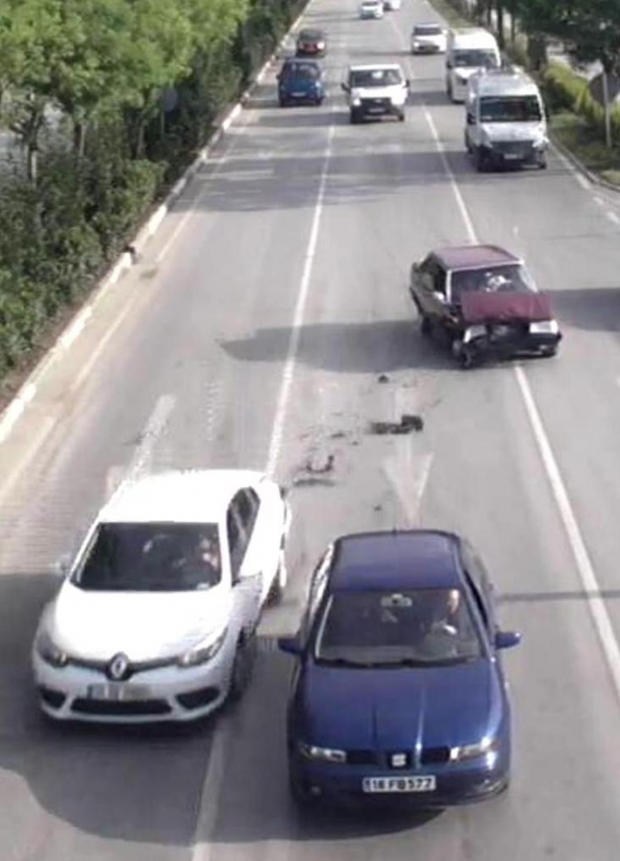 Yalova Yolu üzerinde öndeki araca çarptıktan sonra hurdaya dönen otomobilden çıkan sürücünün yolda güçlükle yüremeye çalışması ve kontrolden çıkan otomobilin Şehirler Arası Otobüs Terminali’ne giriş yapan yolcuların kullandığı kapıya çarpması yürekleri ağıza getiren görüntüler oldu.