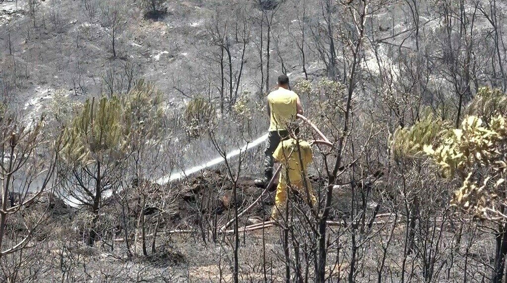 Geceyi soğutma çalışması yaparak geçiren ekipler havanın aydınlanmasıyla birlikte rüzgarın etkisiyle zaman zaman alevlenen bölgelere tek tek müdahale etti.