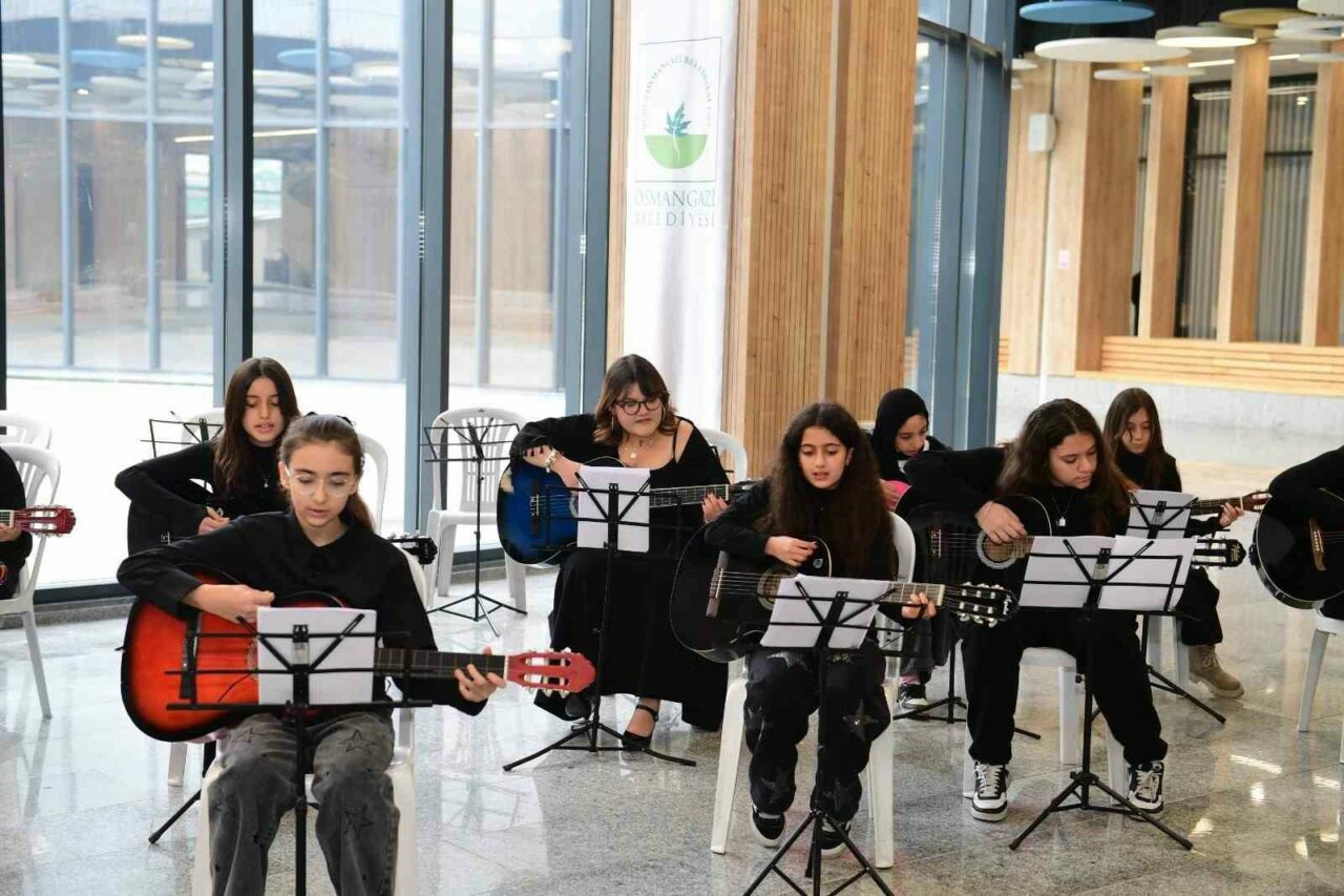 Osmangazi Belediyesi Yetenek Evleri’nde çeşitli sanat dallarında düzenlenen kurslarla yeteneklerini ortaya çıkaran farklı yaş gruplarındaki kursiyerler, çalışmalarını düzenlenen sergide sanatseverlere sundu. Osmangazi Gösteri Merkezi’nde Osmangazi Belediye Başkanı Erkan Aydın’ın katılımıyla gerçekleşen sanat buluşması, Bursalılar tarafından yoğun ilgi gördü. Minyatür evler ile el yapımı ürünleri kapsayan sergide, müzik topluluğu da gitar ve ney eşliğinde mini bir konser verdi.