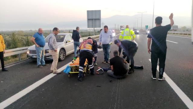 Bu esnada aynı yönde gitmekte olan İsmail Uçar (18) idaresindeki motosiklet, emniyet şeridinde duran otomobile arkadan çarptı. Çarpmanın şiddeti ile sürücü İsmail Uçar ile arkasında yolcu olarak bulunan Ahmet Göktuğ Kurt (20) yola savruldu.