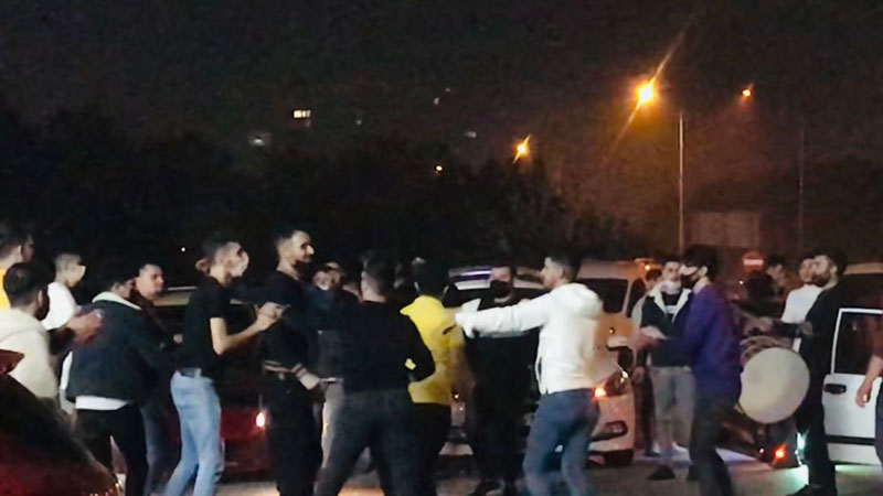 Ardından silahla çeşitli noktalardan ateş edilirken, sosyal mesafe ve maske kuralı alt üst edildi. Daha sonra konvoy halinde trafiğe çıkan gençler tehlikeli hareketler sergileyerek, araçlardan sarktılar.