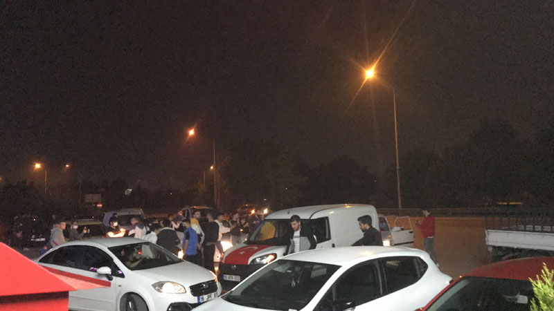 Bir grup genç, askere gidecek olan arkadaşları için konvoy eşliğinde girdikleri yolu trafiğe kapatarak yol ortasında oyun oynamaya başladı.
