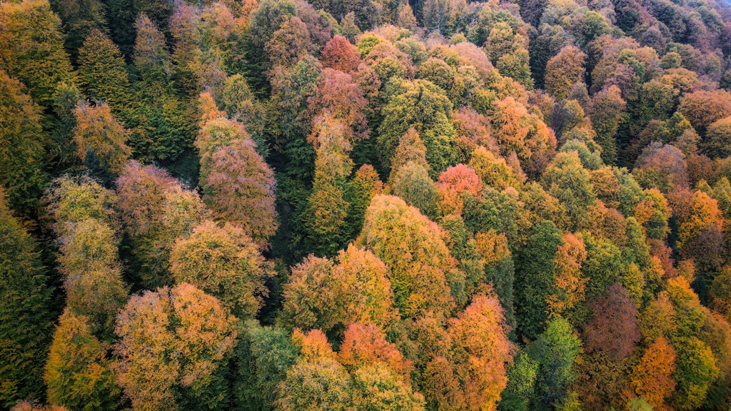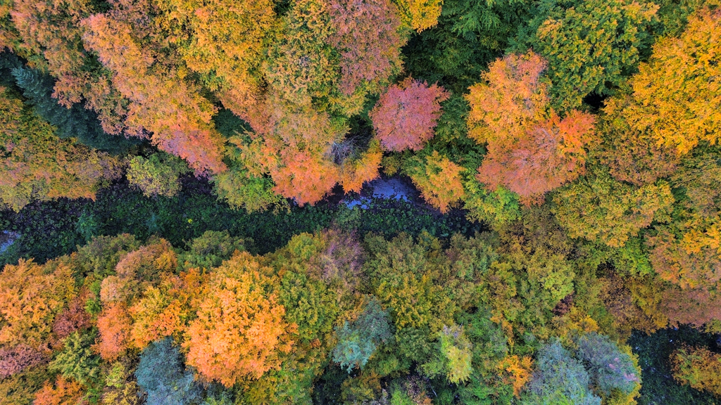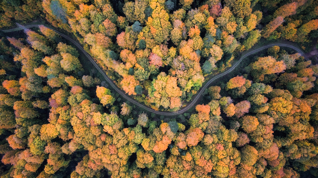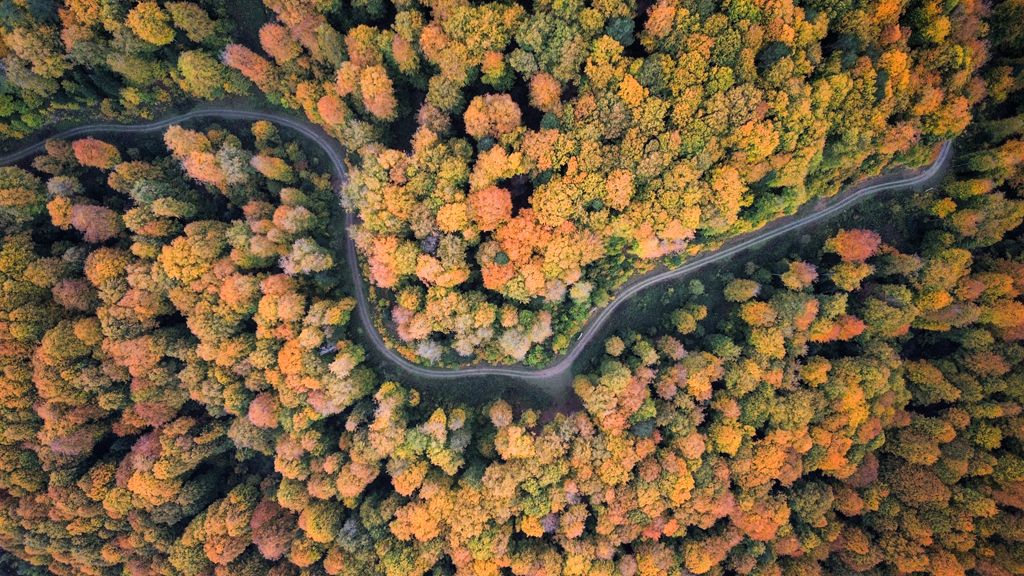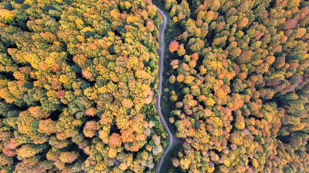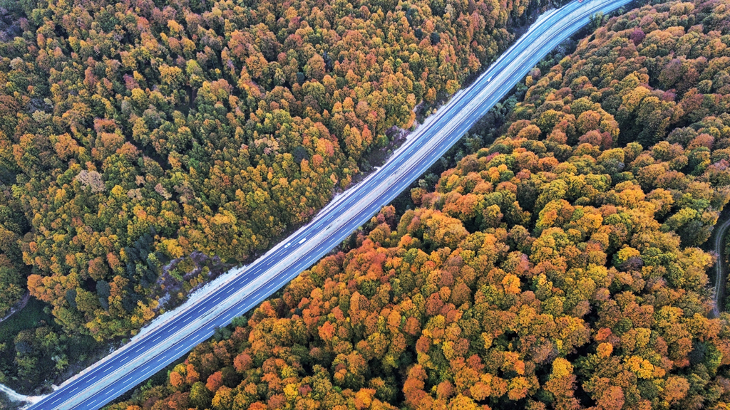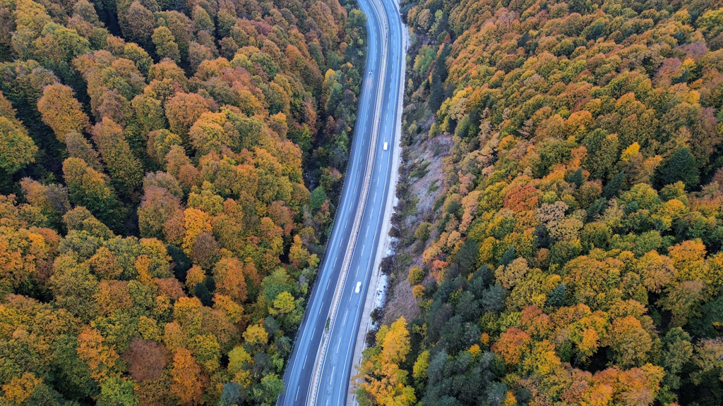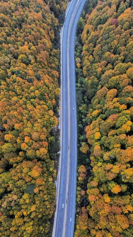 Kara yolunu çevreleyen ve sonbaharla oluşan renk cümbüşü drone ile görüntülendi.