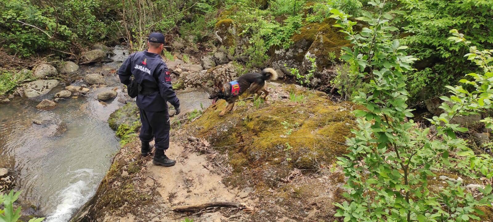Denek, İstanbul İl Jandarma Komutanlığı’nca bölgede görevlendirilen 3 yaşındaki Duman ve İzmir İl Jandarma Komutanlığı’nın kadavra arama köpeği 8 yaşındaki Pedal ile birlikte, Korhan Berzeg’in izini sürüyor.